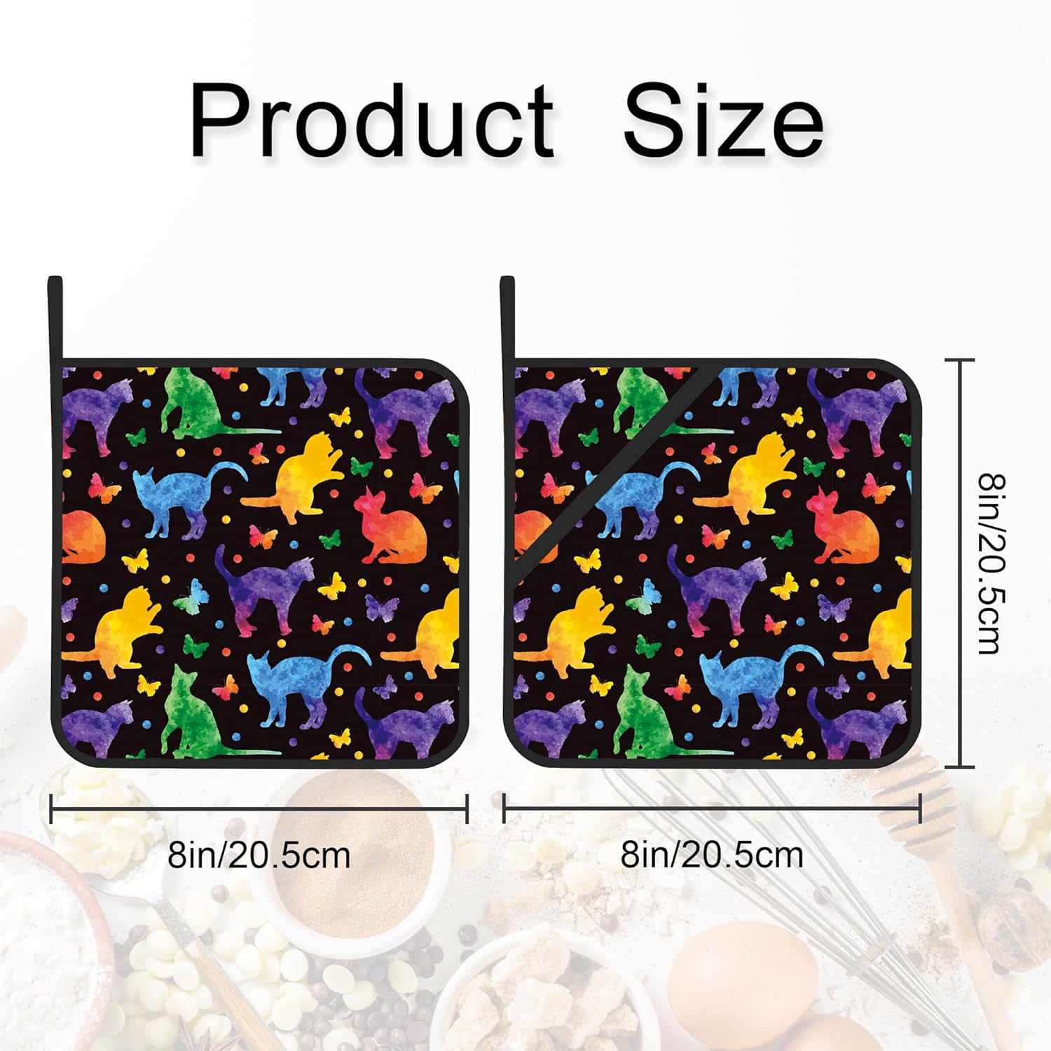 - Dimensions: The potholders measure 8x8 inches, providing a suitable size for various kitchen needs. With their compact dimensions, they are easy to handle and store.