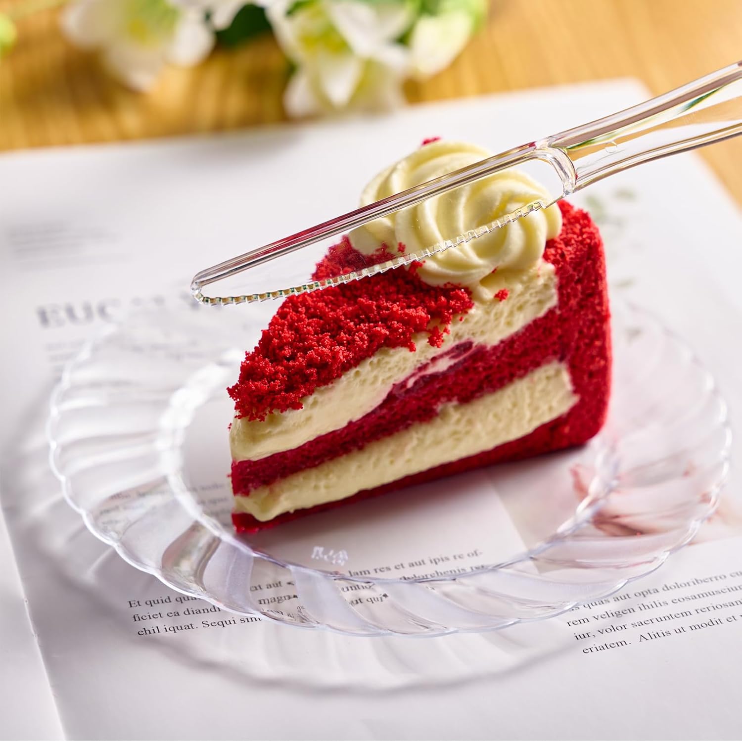 - CLASSIC DESIGN: The disposable plastic clear set showcases a classic design with a comfortable touch, and its well-designed curved shape won't bend or break when in use, allowing you to enjoy even heavy or dense food with maximum comfort.