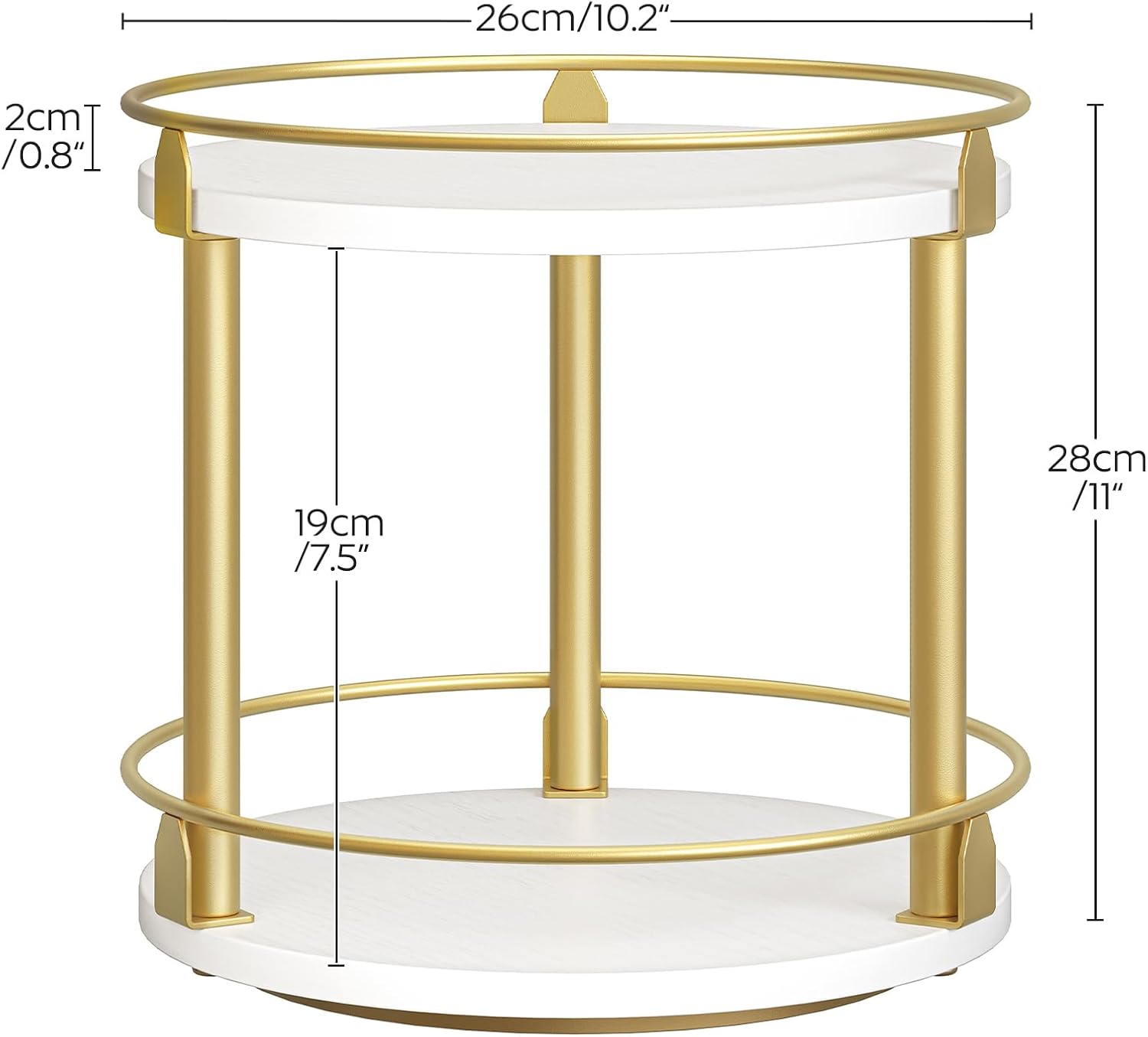 Lazy Susan Organizer, Rotating Spice Rack, 2 Tier Spice Turntable Organizer, Industrial Turntable Spice Holder, for Kitchen Countertop and Cabinet, Compact and Versatile, White and Gold SR22DW