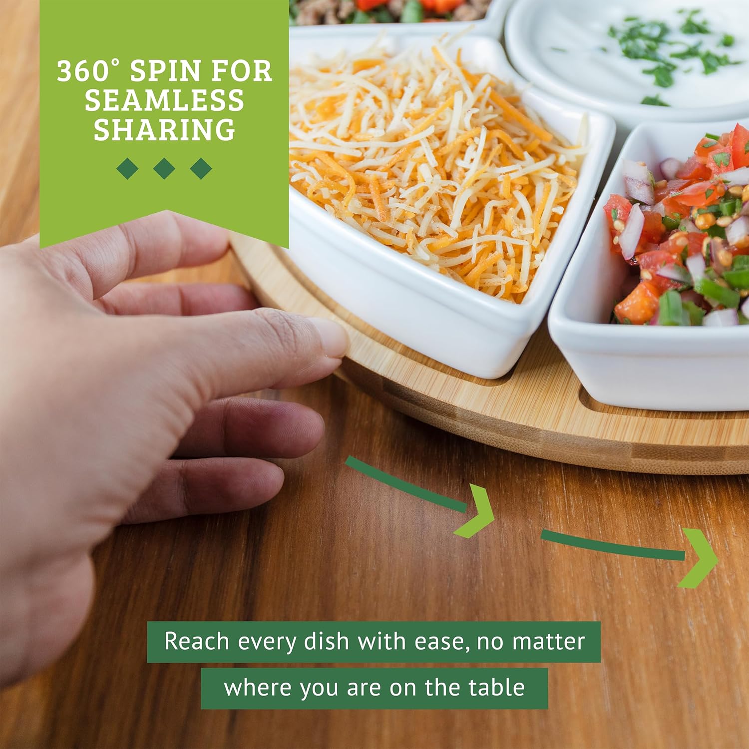- LAZY SUSAN TACO BAR: Take your Taco Tuesday to the next level with the built-in lazy Susan ceramic serving platter! Spin the platter effortlessly to pass around your delectable creations, ensuring that everyone gets a taste of the action. It's not just a serving platter; it's a taco experience that will make your guests rave about your serving tray for party.