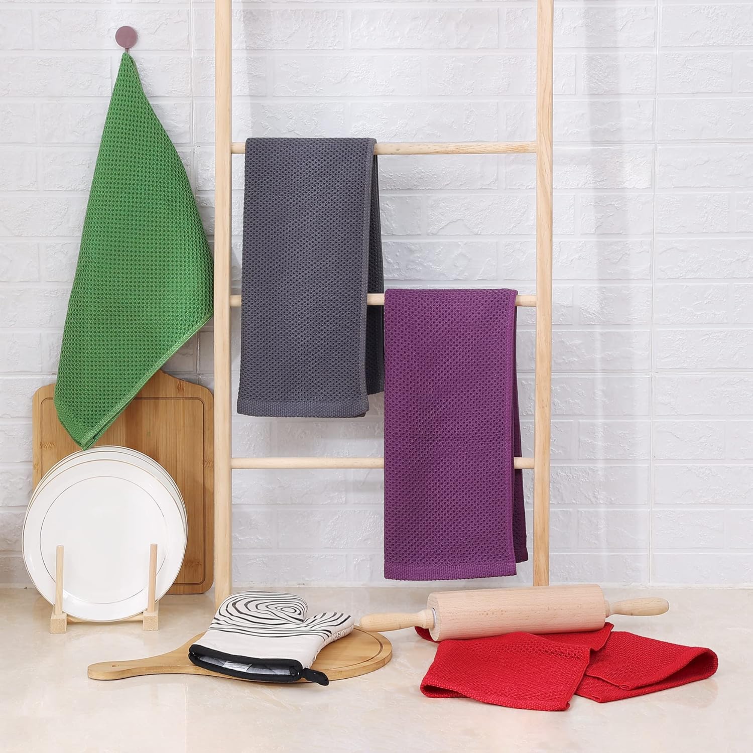 Homaxy 100% Cotton Waffle Weave Kitchen Dish Towels, Ultra Soft Absorbent Quick Drying Cleaning Towel, 13 x 28 Inches, 8-Pack, Purple