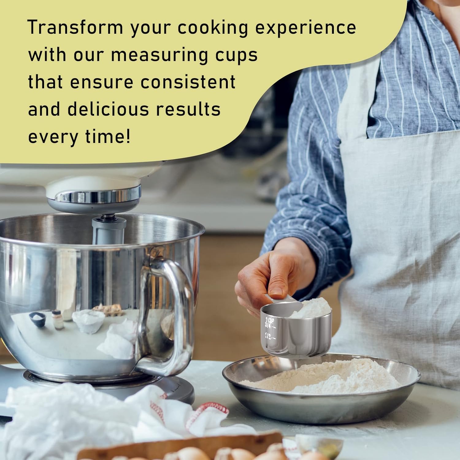 - 【Durable】The integrated molded 304 stainless steel measuring cup is designed for sturdiness and durability, with a solid construction that can withstand regular use without breaking or warping