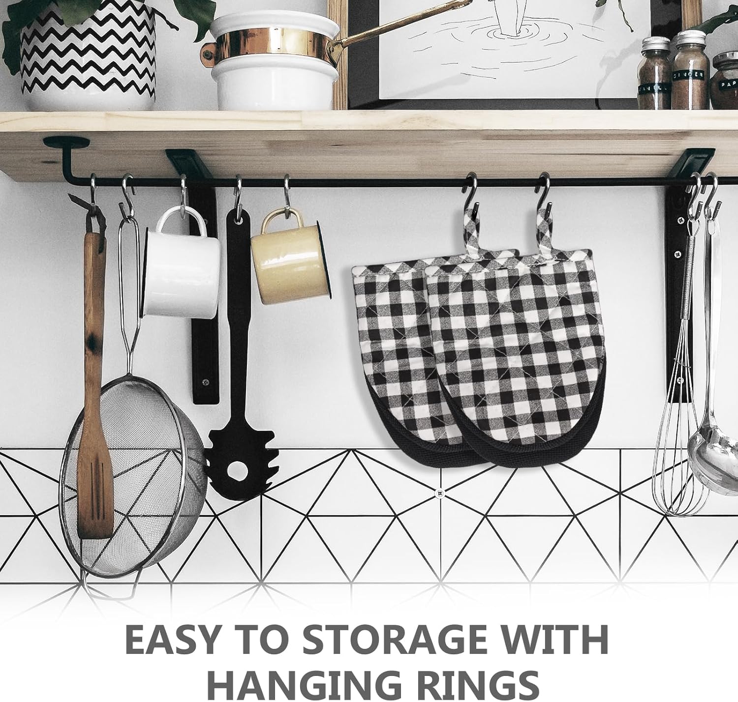 - 【Heat-Resistant】- Made of durable neoprene and cotton, offering protection up to 500°F/260℃. They will protect your hands from heat, steam and grease. These mitts measure 5.5 inches x 7 inches, perfect for small hands.