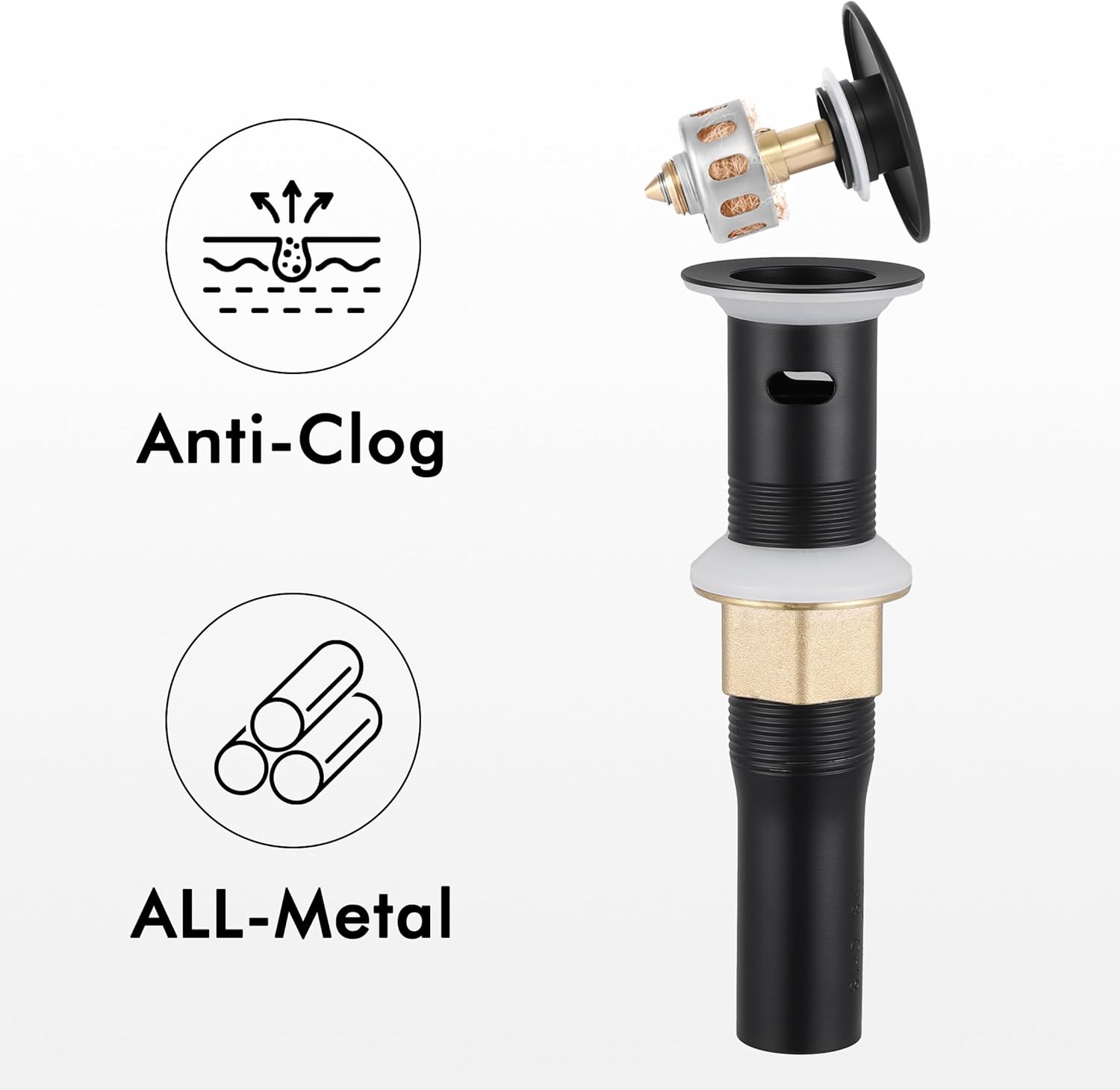 - [ ALL-Metal Drain & Water Supply lines Included ] Including cUPC hoses and a sink stopper equipped with a premium metal anti-clog drain. No need to spend extra money on buying a better drain to replace the inferior plastic one.