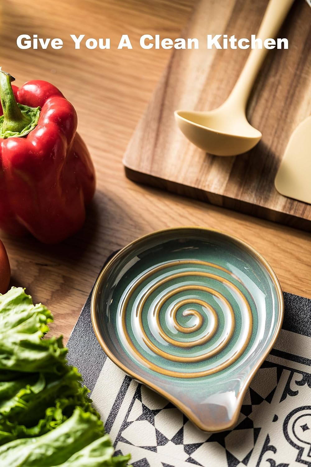 - Versatile Design: Upgrade your kitchen to a whole new level with this ceramic spoon rest. It provids a convenient spot to temporarily place your cooking utensils, spoons, chopsticks and food while you stir-fry, simmer, or prep ingredients. With its spacious size, it accommodates various-sized utensils and effectively avioding food from dripping and keeping your countertop tidy
