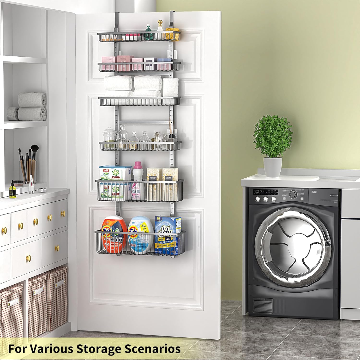 - Quick & Easy Installation: No tools or drilling are required to install our pantry organizer over any standard door. This makes it a hassle-free storage solution that won't damage your walls or doors.