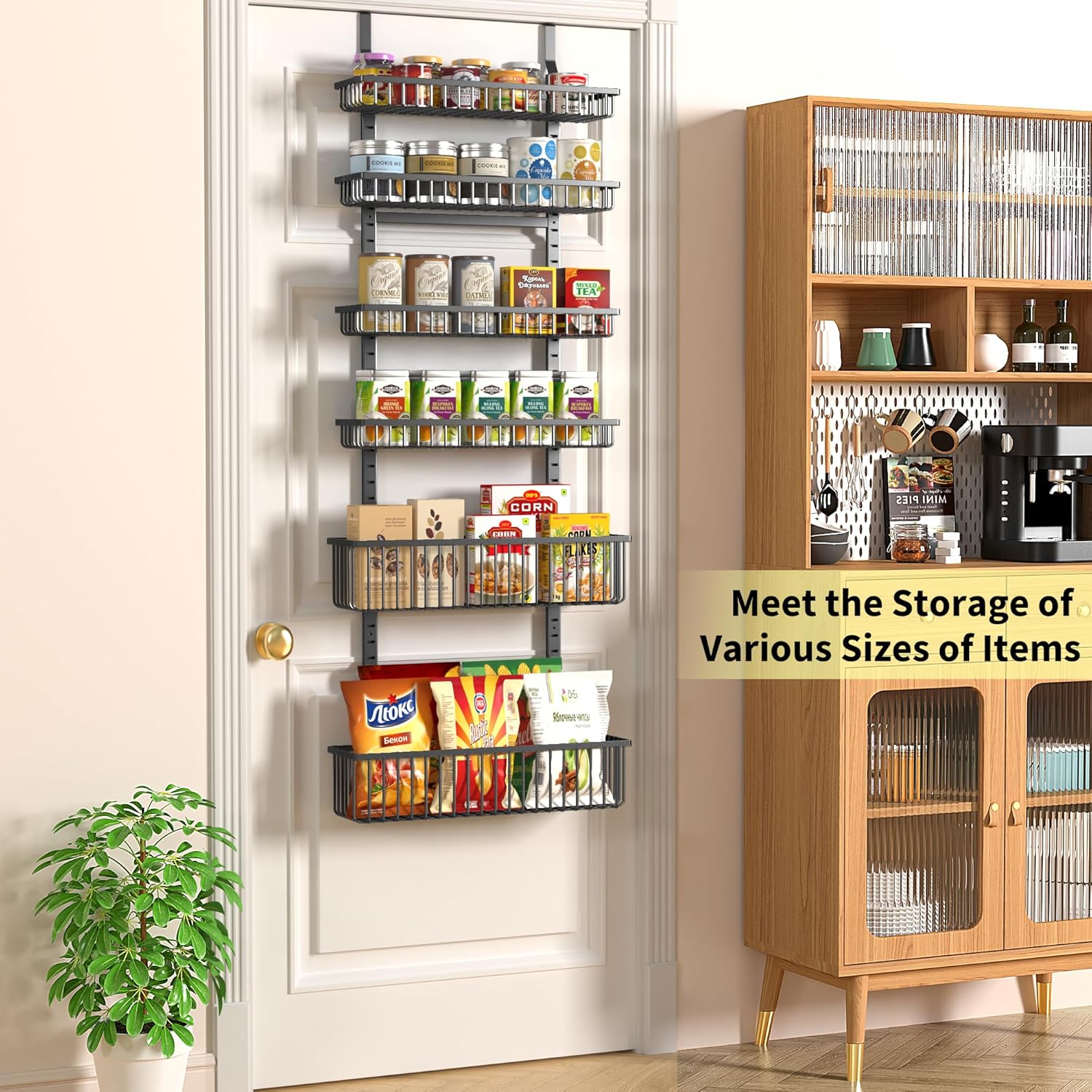 - Maximize Your Space: Our 6-Tier over the door pantry organizer is designed to make the most of your storage space, allowing you to store more items in a smaller area such as spice and some jars. Perfect for small kitchens or those with limited storage space.