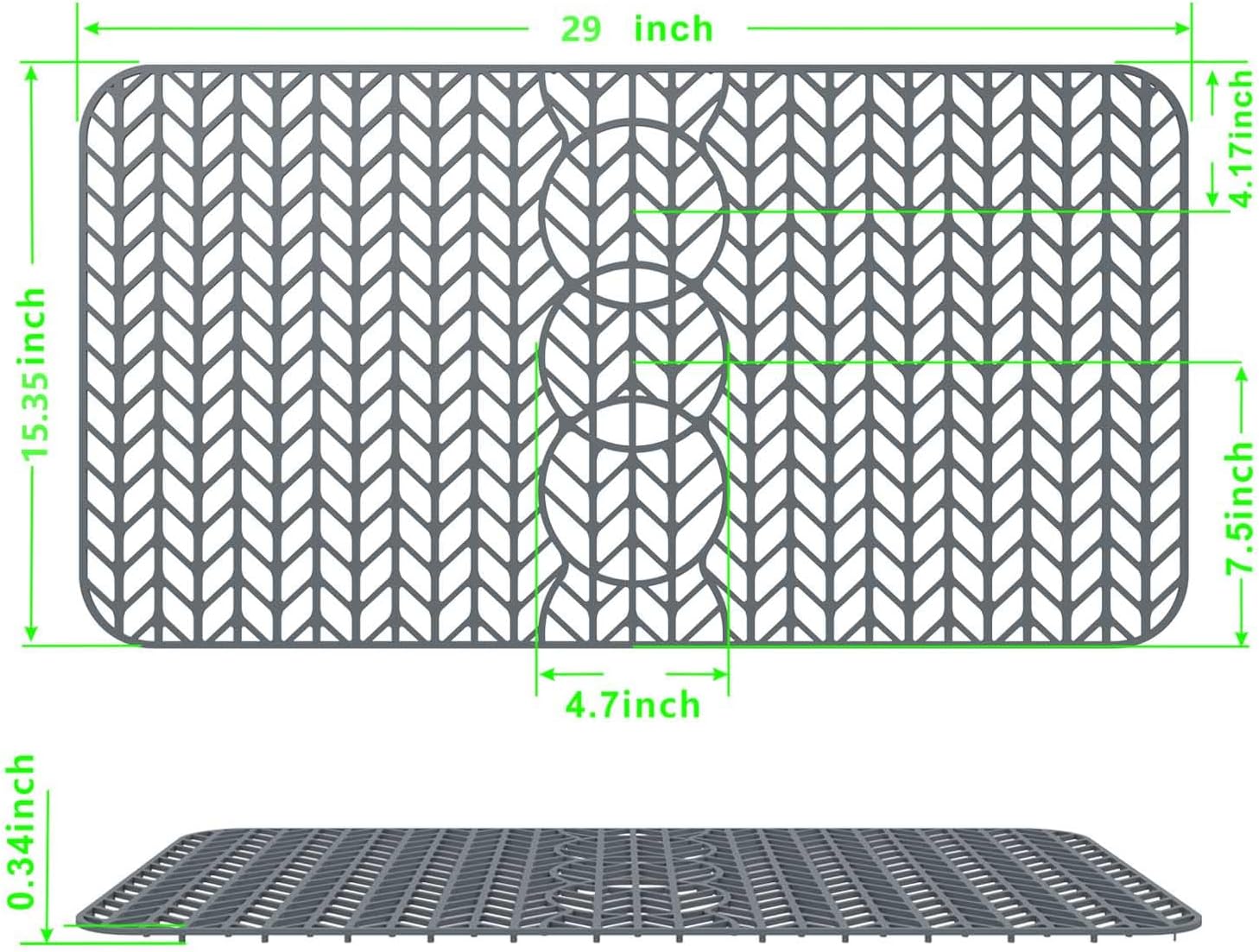 GUUKIN Sink Protectors for Kitchen Mat - 29"x 15.35" Silicone Kitchen Sink Mat Grid for Bottom of Farmhouse Stainless Steel Porcelain with 3 Reserved Holes(Grey)