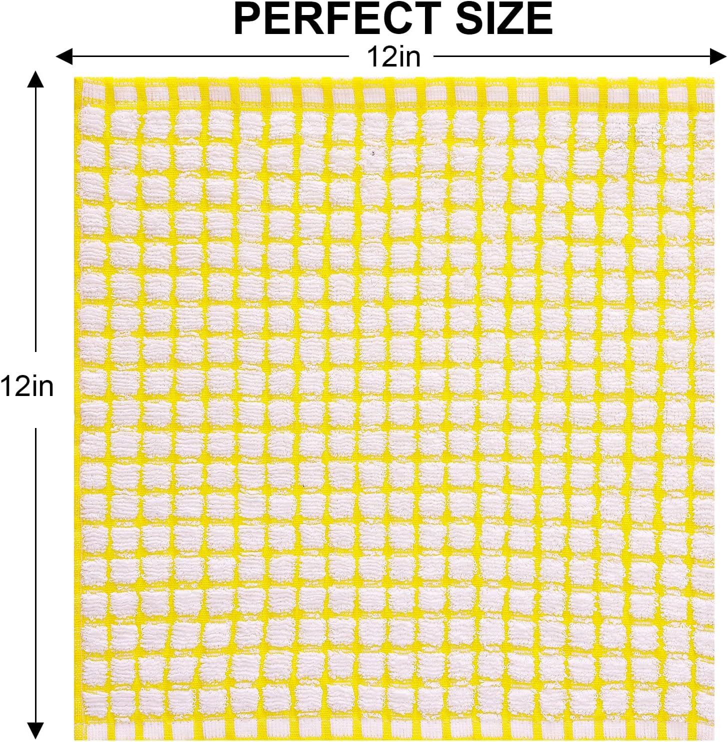 Kitinjoy Cotton 8 Pack Terry Kitchen Dish Cloths, 12 x 12 Inches Super Soft and Absorbent Dish Rags, Quick Drying Dish Towels for Washing Dishes, Yellow