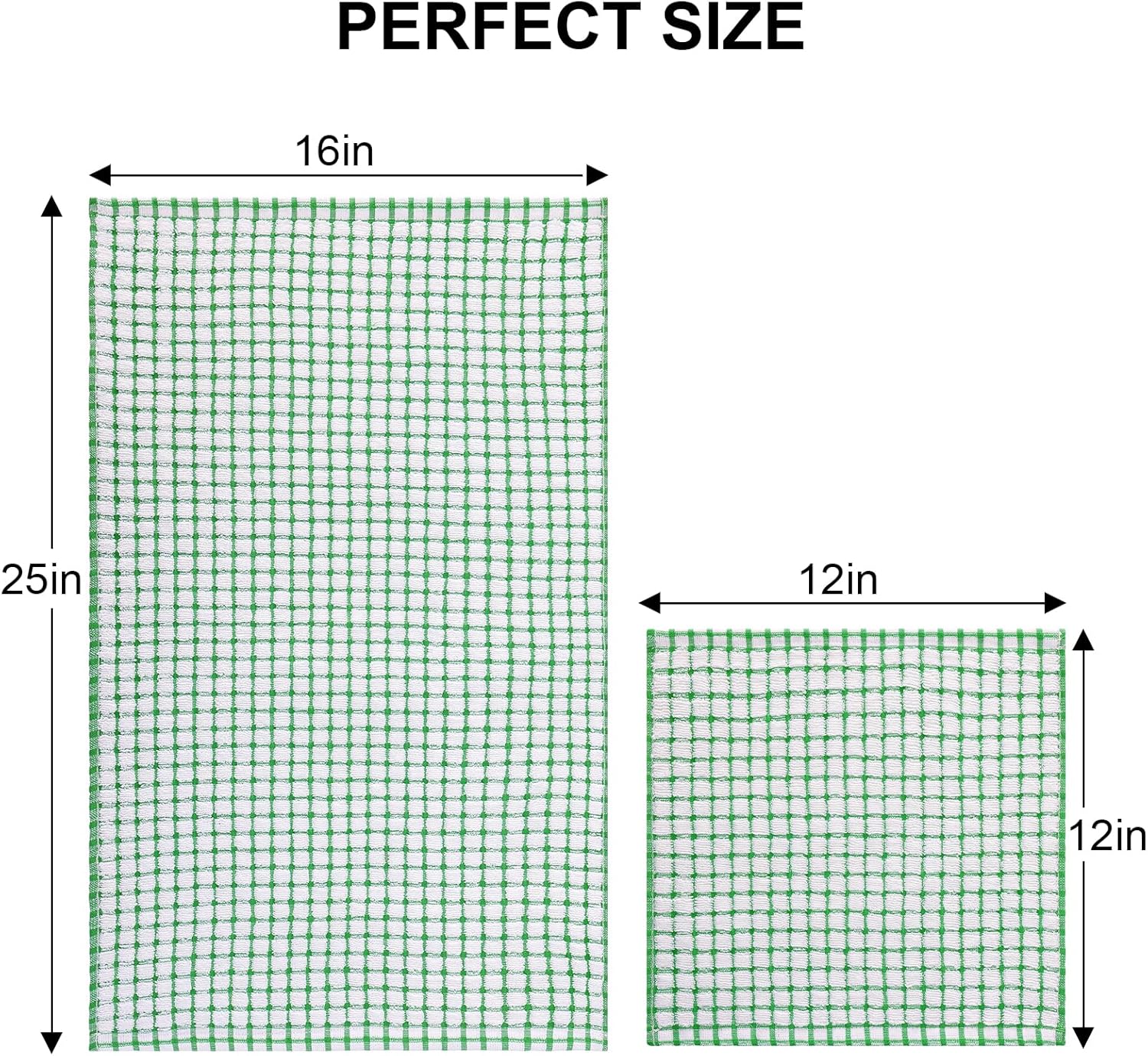 - Value Pack: Collection includes 12 cotton dish towels, measuring 16 x 25 Inches & 12 X 12 Inches, available in a variety of colors to coordinate with any kitchen dΓ©cor. If you have any questions or suggestions after receiving the product, please contact us, our customer service team will reply within 24h
