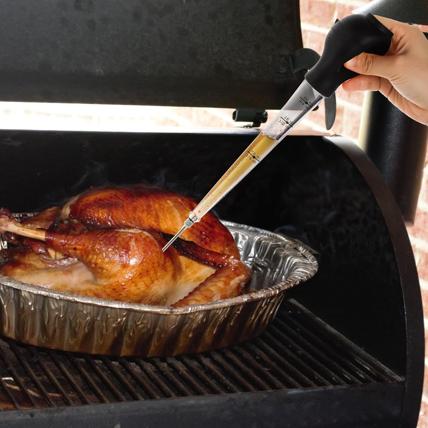 - The turkey baster sets are easy to change from baster to brush and injector, convenient for you to brush the sauces on turkey or meat evenly, and the flavor injectors works great, has a fine tip that penetrates meat easily without any hassle, they are must have all-in-one set on your kitchen. Perfect for holiday cooking: Thanksgiving, Christmas.