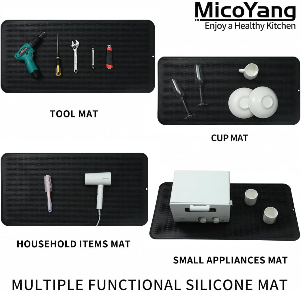 Silicone Dish Drying Mat for Multiple Usage,Easy clean,Eco-friendly,Heat-resistant Silicone Mat for Kitchen Counter or Sink,Refrigerator or Drawer Liner Black 5XL 36inches x 18inches