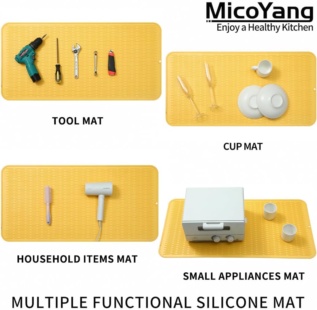 Silicone Dish Drying Mat for Multiple Usage,Easy clean,Eco-friendly,Heat-resistant Silicone Mat for Kitchen Counter or Sink,Refrigerator or Drawer Liner Yellow 5XL 36inches x 18inches