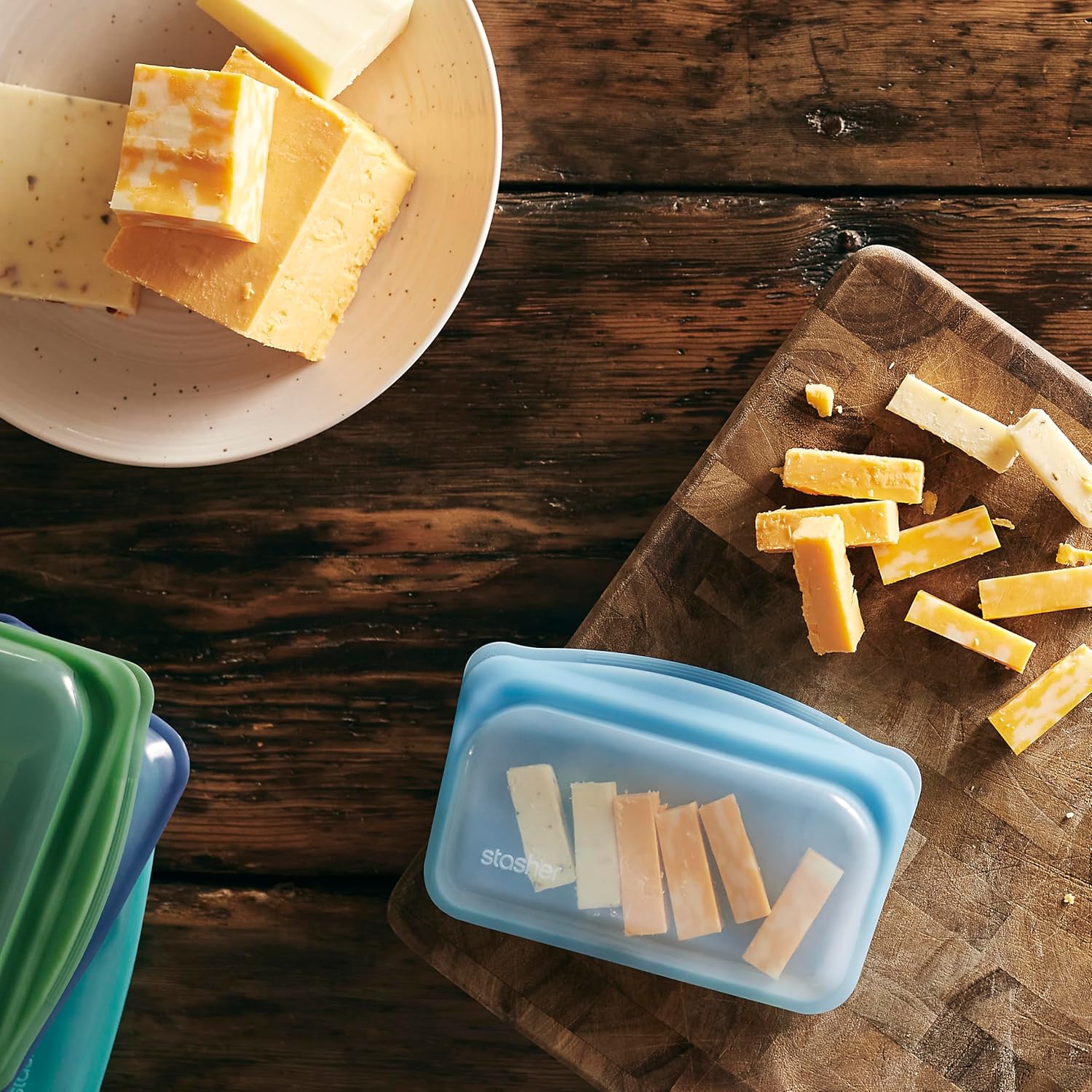 - REUSABLE, REWASHABLE CONTAINERS: Stasher silicone reusable storage bags make it easy to ditch single-use plastic and meet endless household needs. Safe for the dishwasher, microwave, oven (up to 425Β°F), and more.