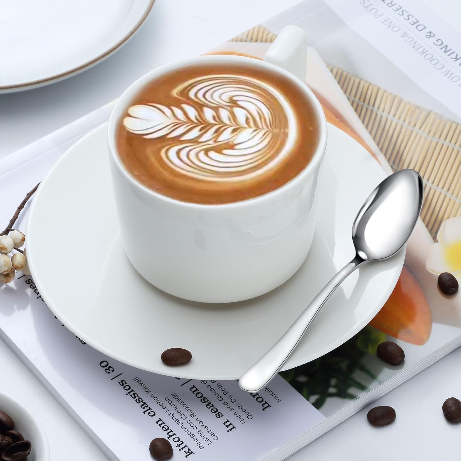 - 【24 PCS 4.7” Espresso Spoons】This spoons set comprises 24 espresso spoons, ensuring an ample supply that's easily replaceable. It's the ideal quantity and size for various settings, suitable for daily teatime use and as reserves for gatherings. These 4.7-inch coffee spoons perfectly fit espresso coffee or tea cups, ideal for stirring sugar