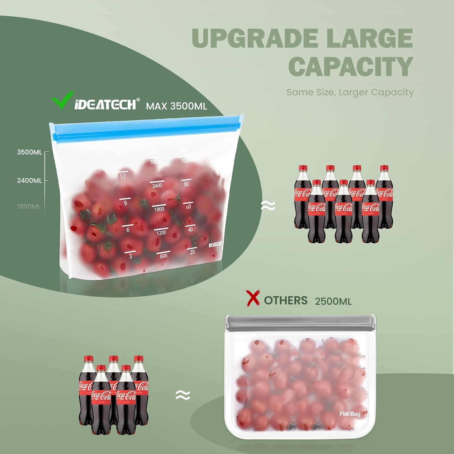 IDEATECH Reusable Sandwich Bags Gallon Freezer Bags Leakproof & Dishwasher Safe - Silicone Bag for Food Ftorage Stand Up for Meal Prep, Travel, Washable (6 Gallon + 6 Sandwich + 8 Snack)