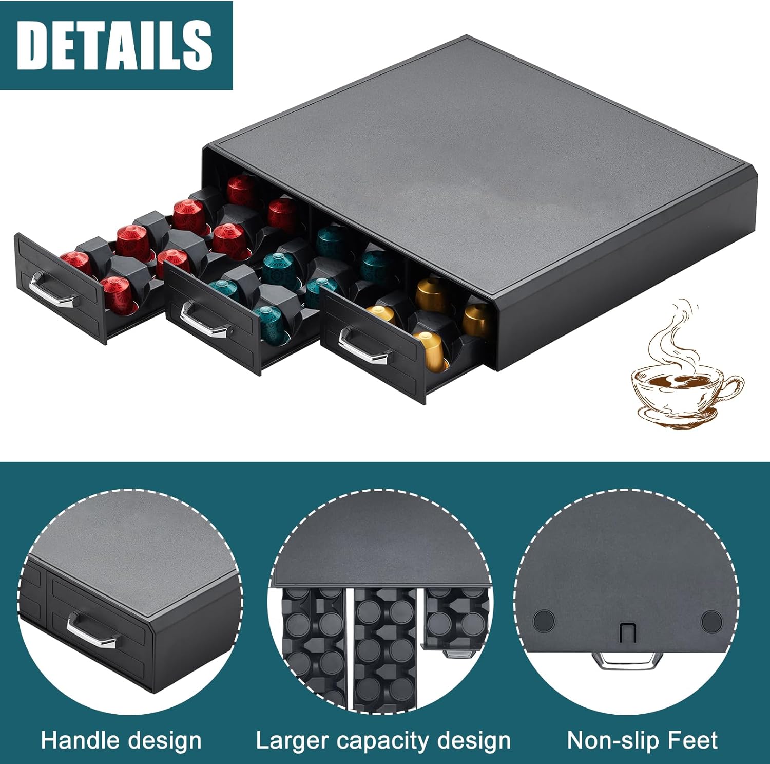 K Cup Holder Drawer 30 Pods Capacity, Three Drawers Design for Nespresso Pods Holder, Coffee Pod Holder Compatible With Keurig Pod Organizer&Nespresso/K-Cup/Vertuo Pod Holder, Black
