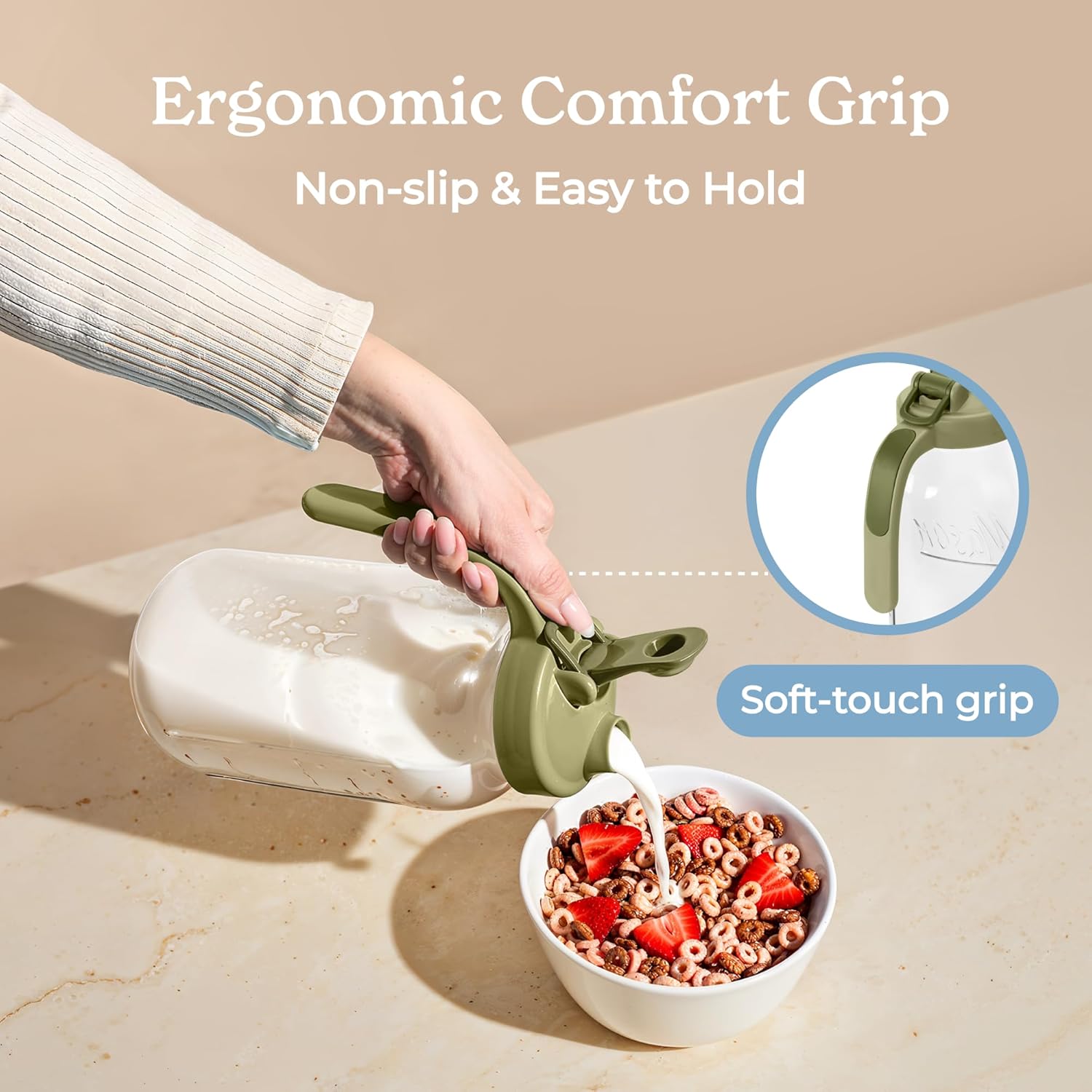- Functional design: The non-slip handle on this 2 quart pitcher with lid ensures steady pouring.Hanging ring on this large mason jars adds convenience for easy carrying and storage