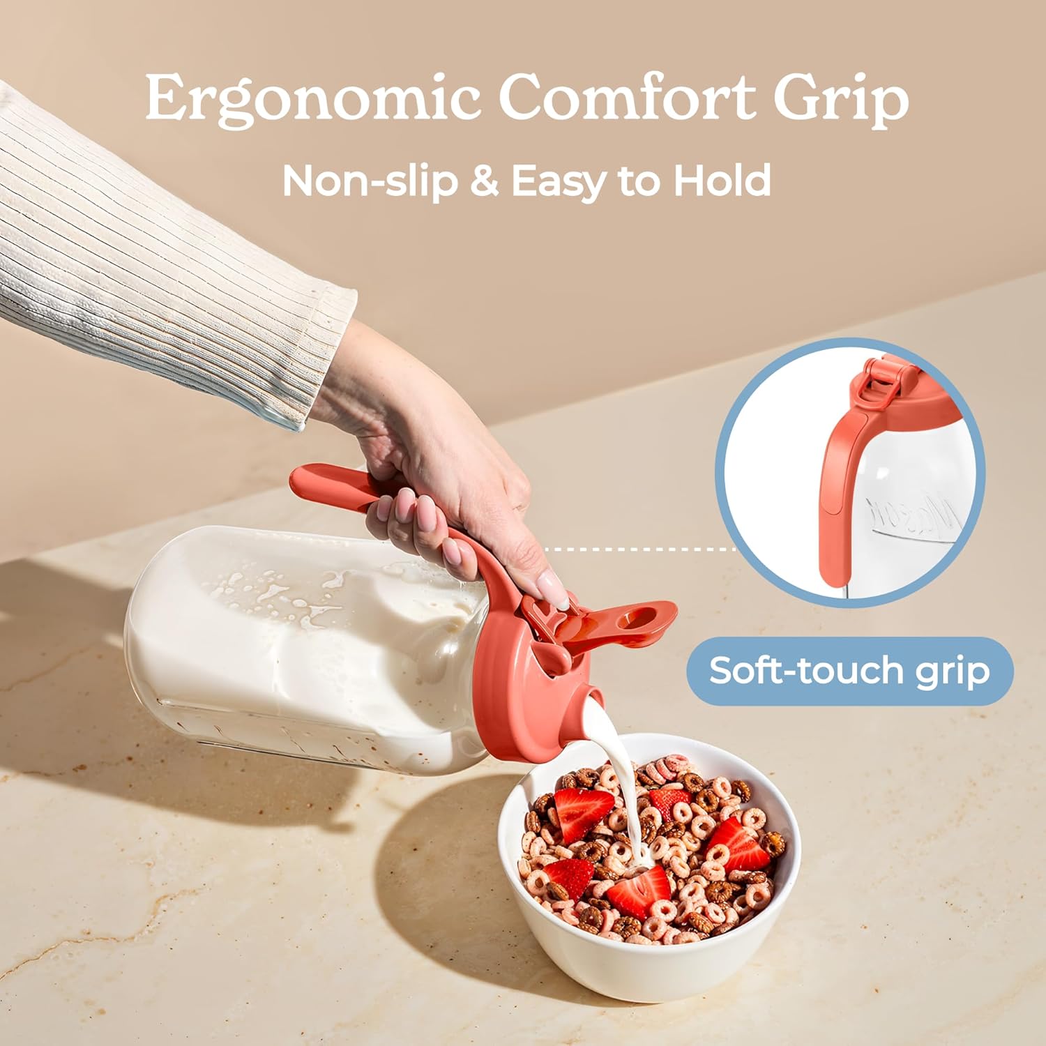 - Measuring Marker: This pitcher with spout features measurement markers can easure with ease. Compatible with 3 and 3/8in mason jars, use it as an breastmilk pitcher or versatile glass juice pitcher