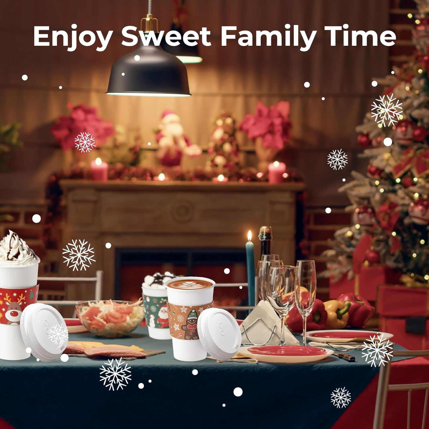 - Ideal Christmas Hot Cups with Lids: The tightly sealing lid prevents leaks and spills while keeping beverages warm. Each festive disposable cup features a rolled rim for comfortable, leak-free sipping, and a poly-coated lining to minimize condensation.