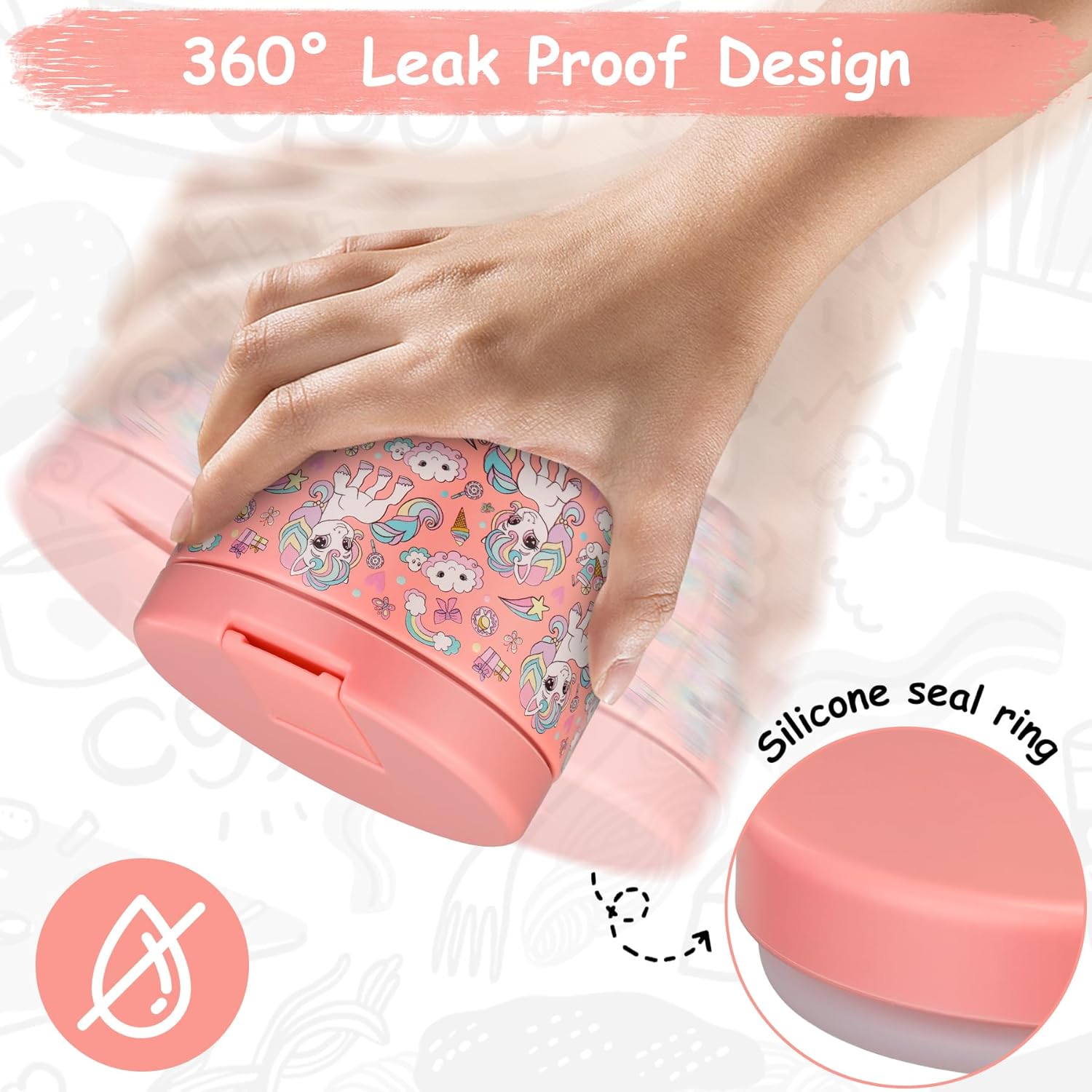 12oz Insulated Vacuum Food Jar with Buckle Lid Wide Mouth Soup Thermo for Hot Food Kids Leakproof Stainless Steel Lunch Container (Pink-Horse)
