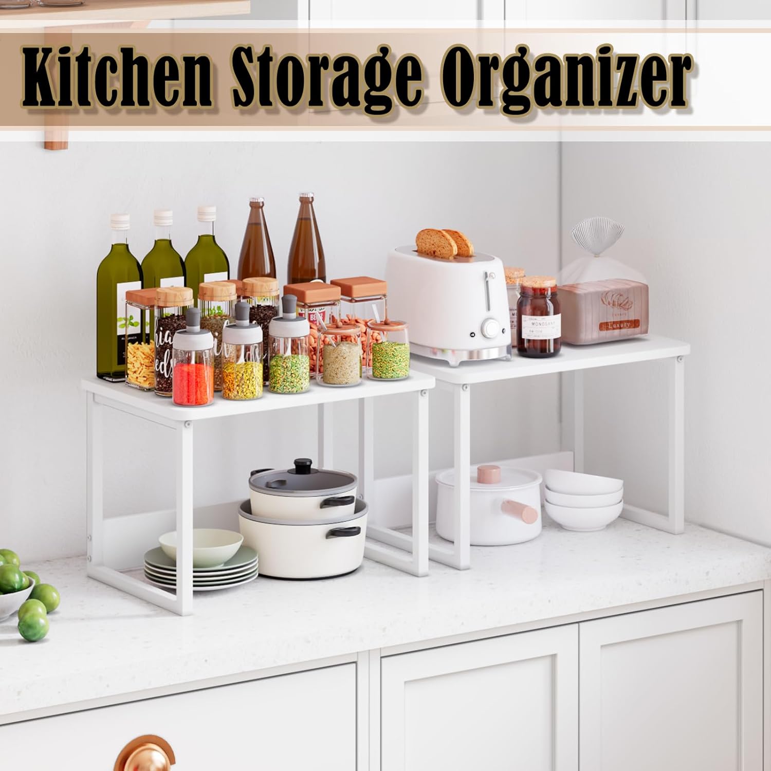 - 【Multifunctional Counter Shelf】①In the kitchen: put them in the cabinet or on the counter to create more space for boxed grains, spice bottles, glasses, bowls and more. ②In the living room: create a neat coffee area with these shelves. ③In the office: can be used as a printer stand, laptop riser, book shelf. ④ In the bedroom: used to organize cosmetics.