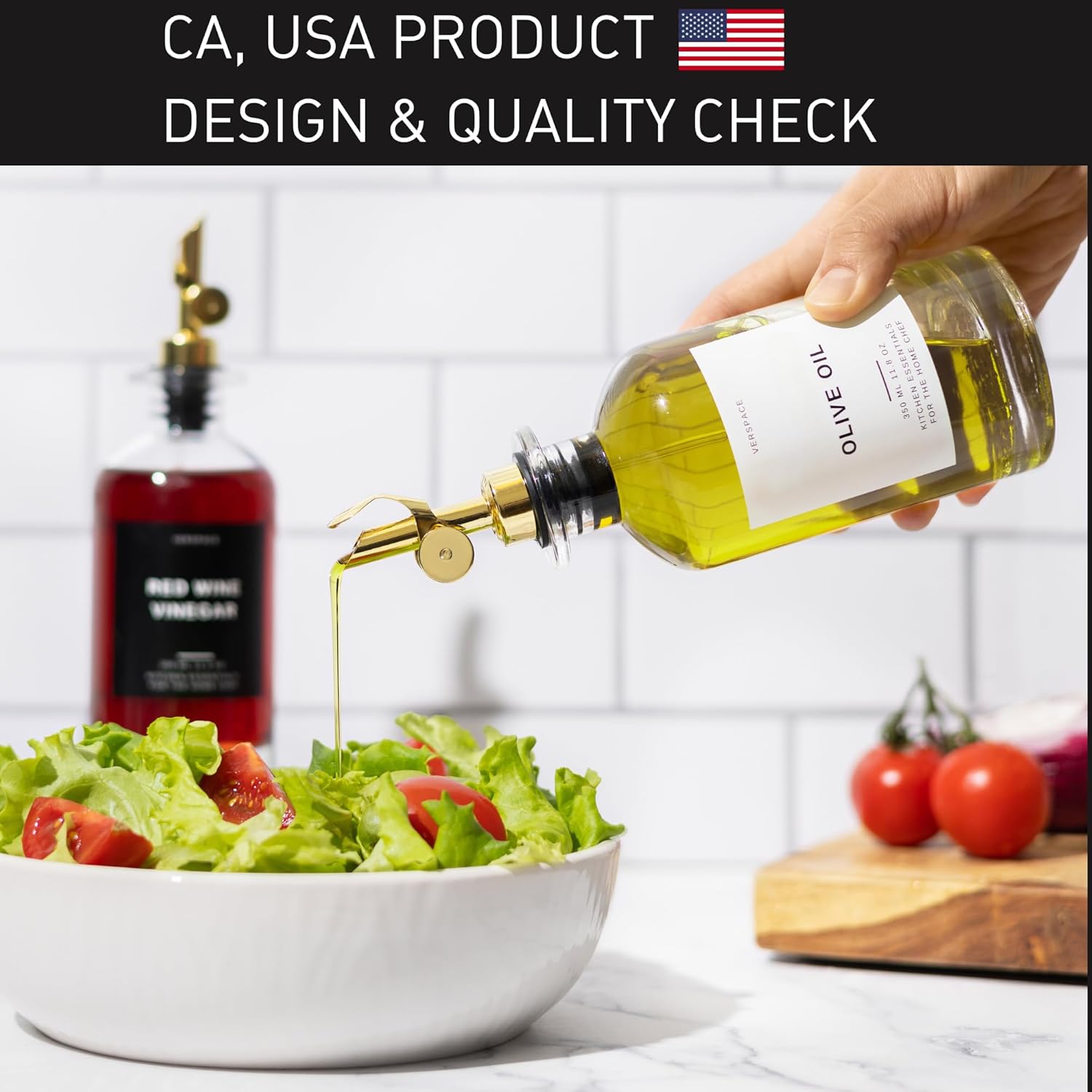 - Leak-Proof Pourer Spout: With our mess-free black rubber stopper, spend more time enhancing flavors and less time cleaning up. The pourer spout of this olive oil bottle dispenser will open and close when the bottle is tilted.