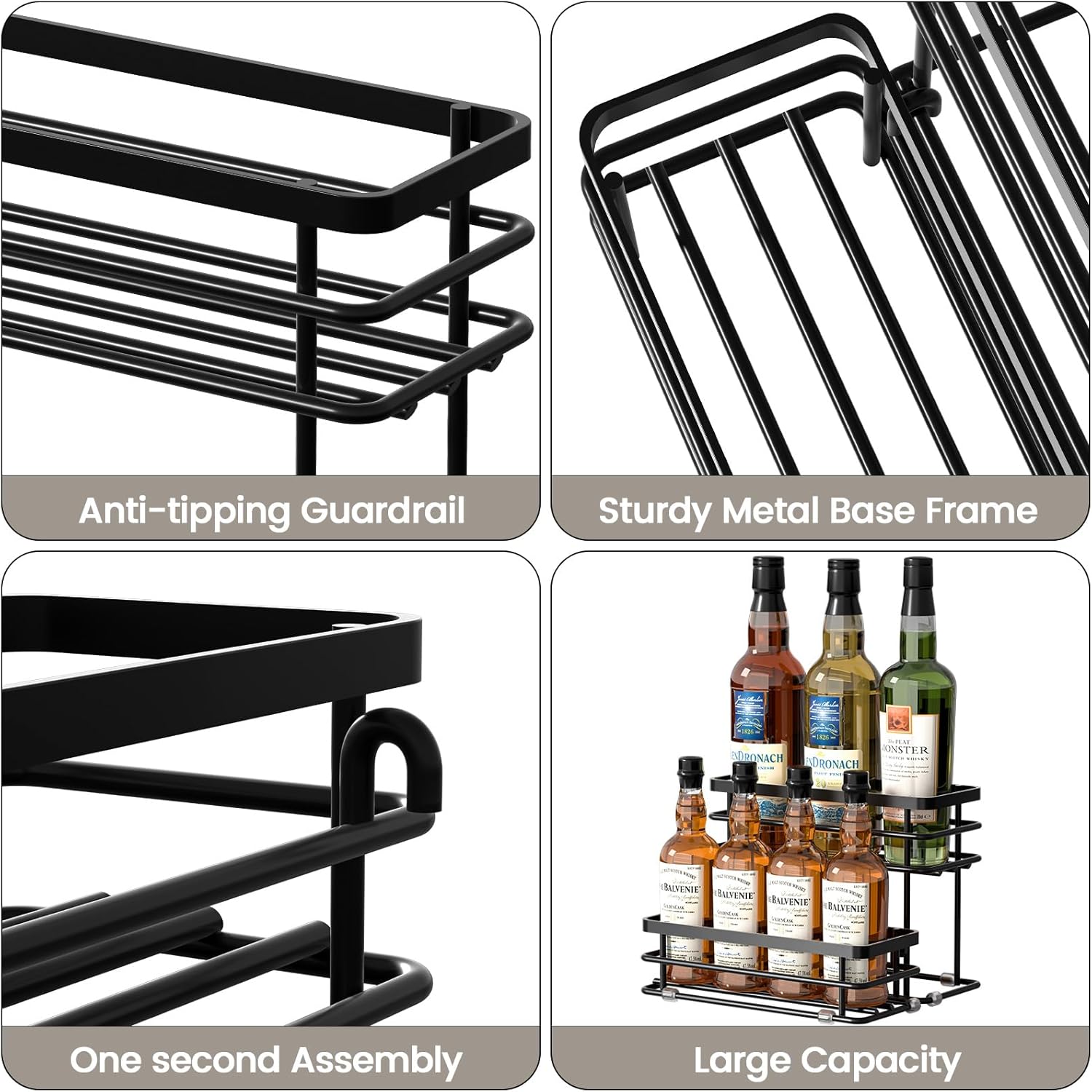 - [Syrup Rack Organizer] The 2-tier syrup rack organizes all flavors of syrup neatly in one place, can hold up to 8 syrup bottles (750ml), for viewing and easy access when needed, sturdy and durable.