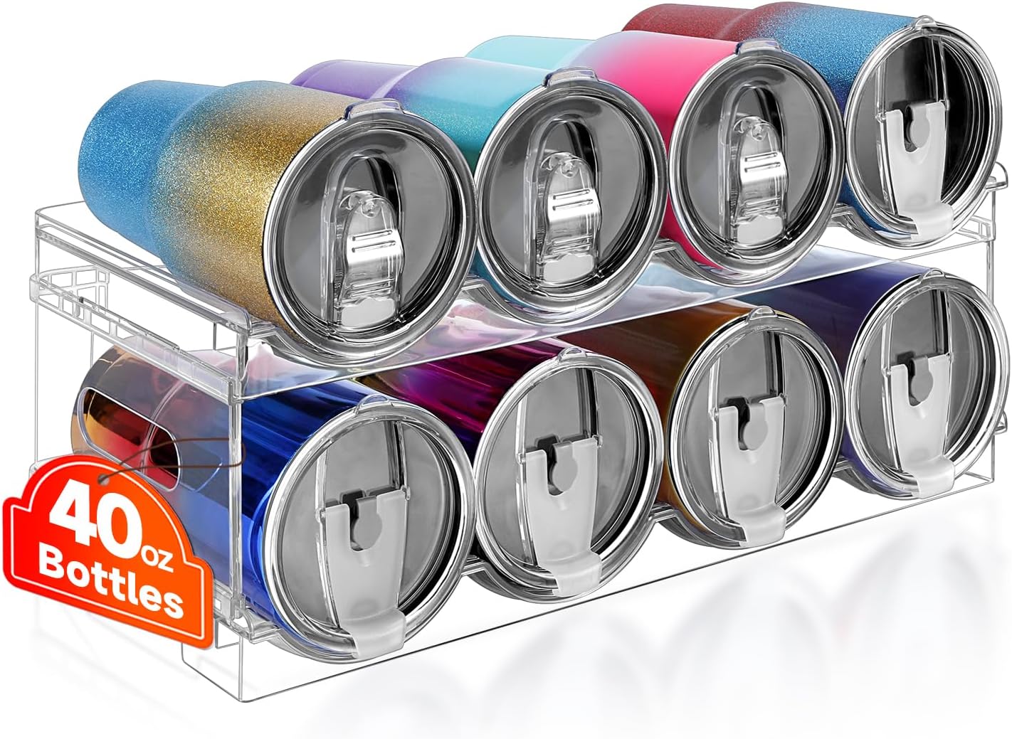 Large Compartment Water Bottle Organizer,2 Tier Stackable Water Bottle Rack for Cabinet,Tumbler Storage Organizer for Kitchen,Fridge,Cabinet Organization and Storage