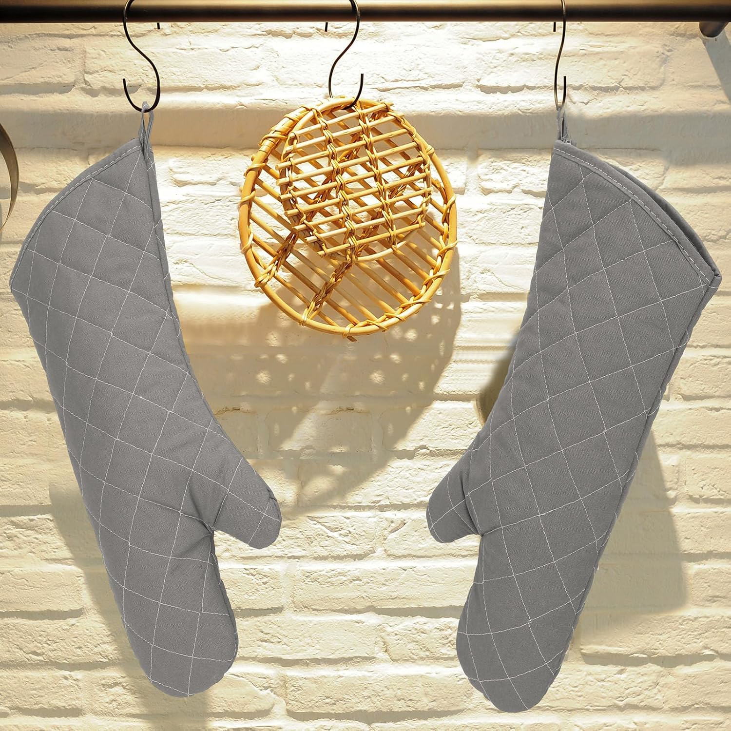 - Smart Storage Solution: these extra long oven gloves kitchen come with a convenient hanging loop, which aids in easy storage; In addition, their beveled edge design not only saves space but also provides adequate air circulation, representing long lasting performance, angled cuff design also provides additional protection for your forearm