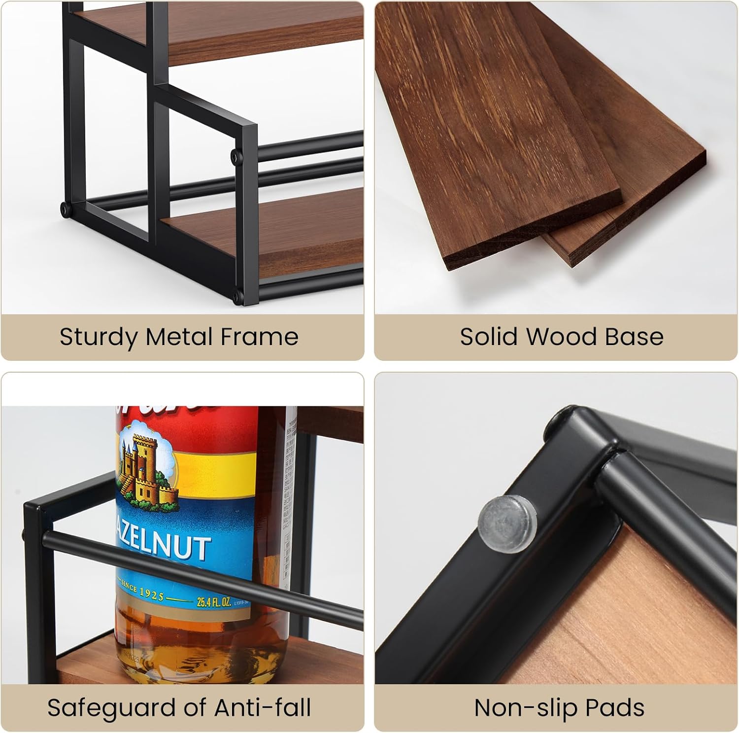 - 【Flavor Syrup Organizer】2-tier syrup rack keeps syrup of all flavors neatly organized in one place for visibility and easy access when needed, holds up to 10 syrup bottles (750ml), sturdy enough to use the syrup pumps with the bottles still in the rack.