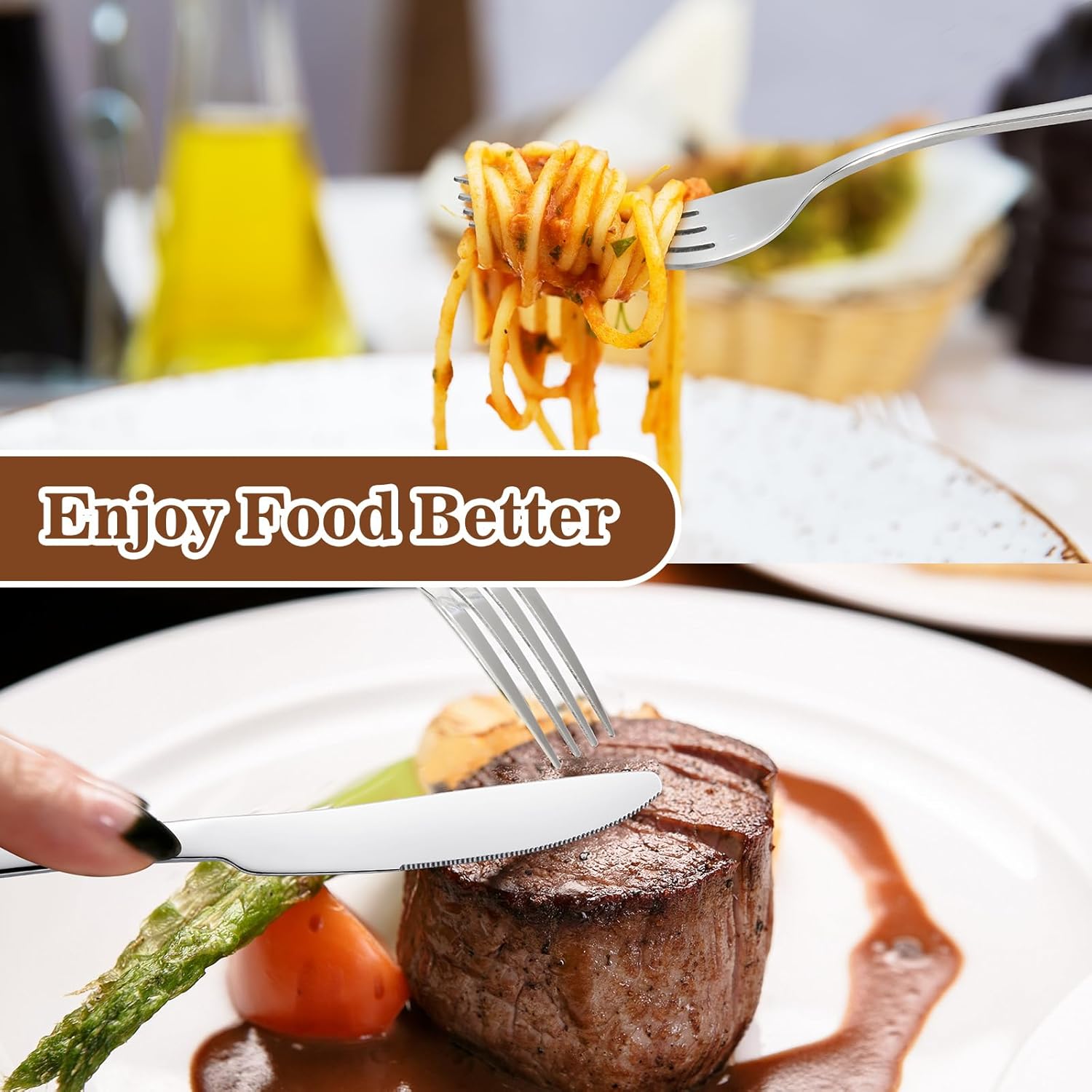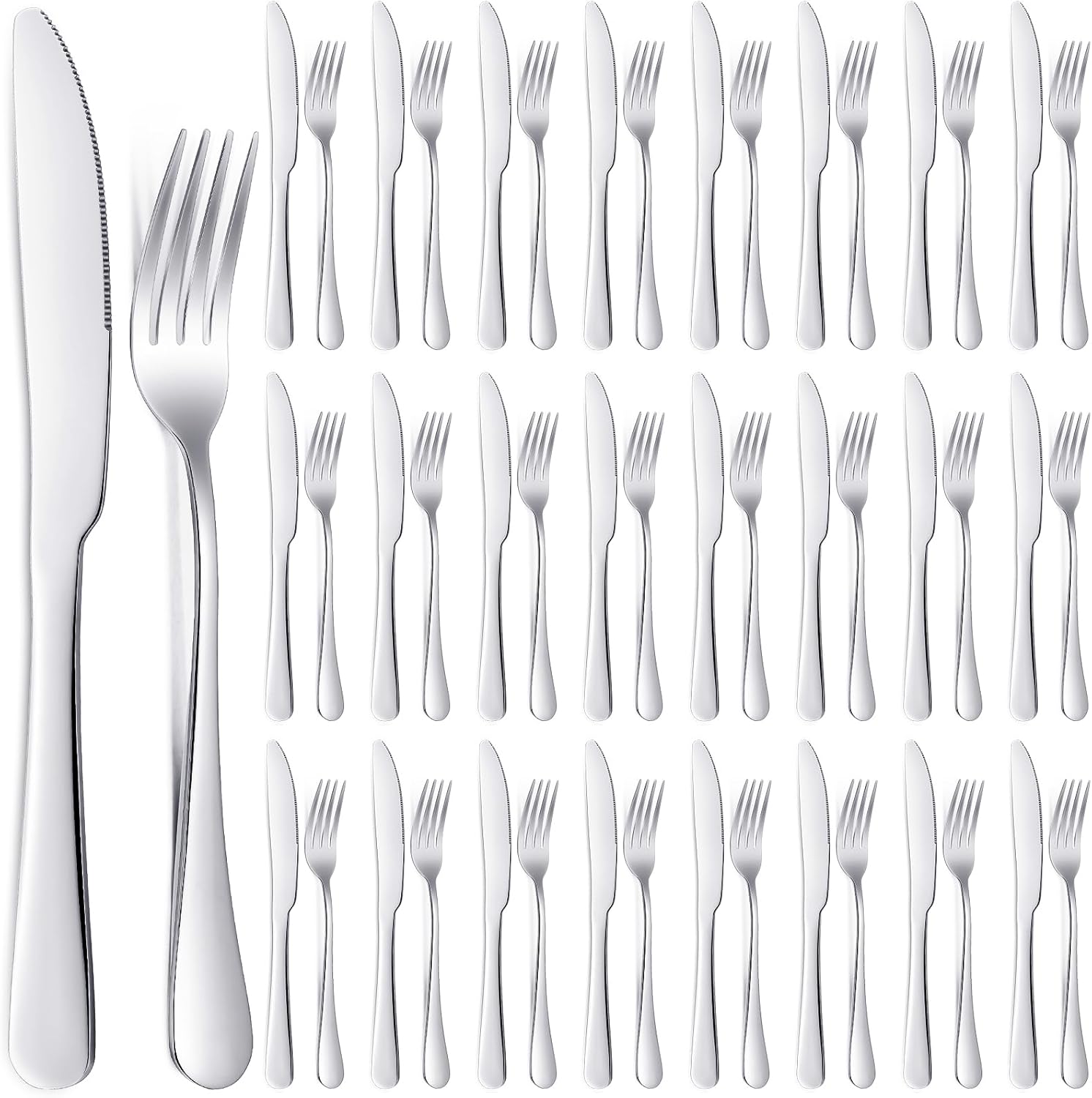 - Quality Material: the forks and knives set is crafted with quality stainless steel; The durability of this material ensures that the utensils will not warp, discolor, or bend easily, which adds longevity, at the same time, it is also dishwasher safe, bringing you convenience