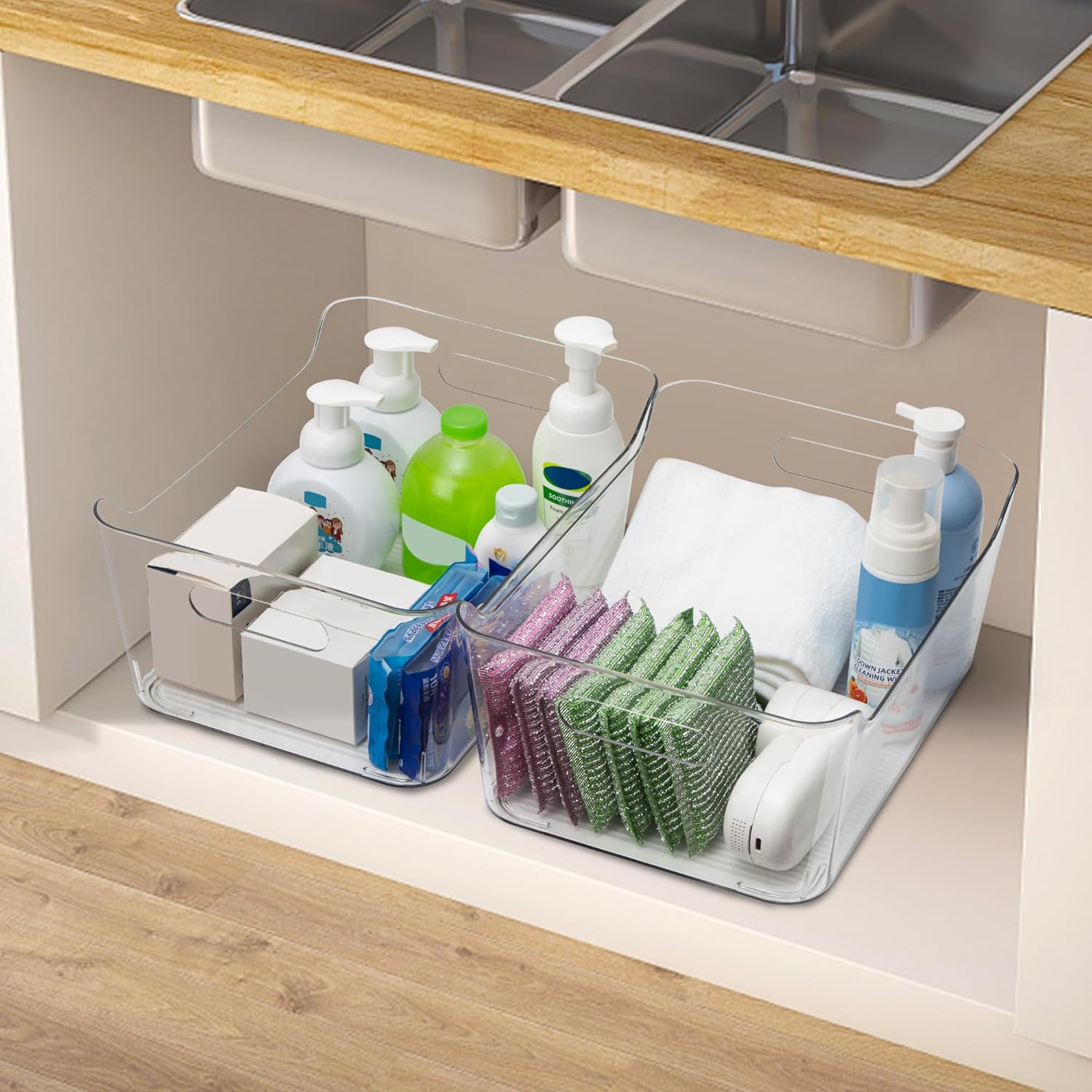 - Multipurpose Bins: Designed to keep your pantry shelves neatly organized. Our clear organizer bins are great for home and office use for organization. Also use in craft room, laundry room, bedroom, bathroom, garage, playroom and more. Expand your possibilities with our versatile clear organizer.