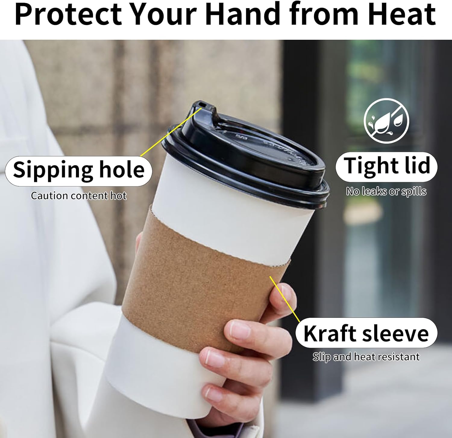 - Convenient and Versatile: These 16-ounce cups with lids and sleeves are ideal for various settings, including cafes, offices, events, or home use. They're stackable, saving space, and the disposable design ensures easy clean-up and no hassle