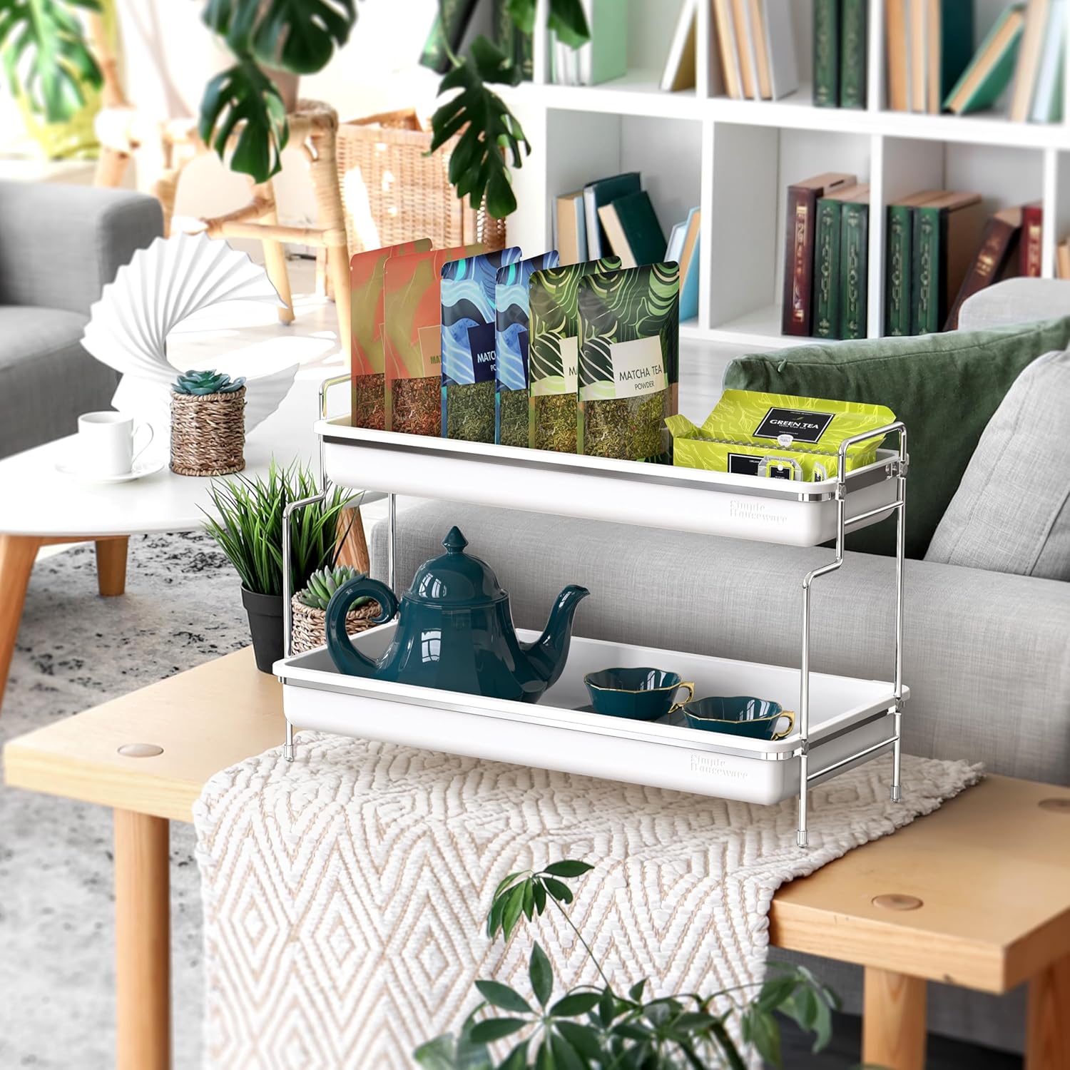 Simple Houseware 2-Tier Spice Rack Kitchen Organizer Countertop Shelf, White
