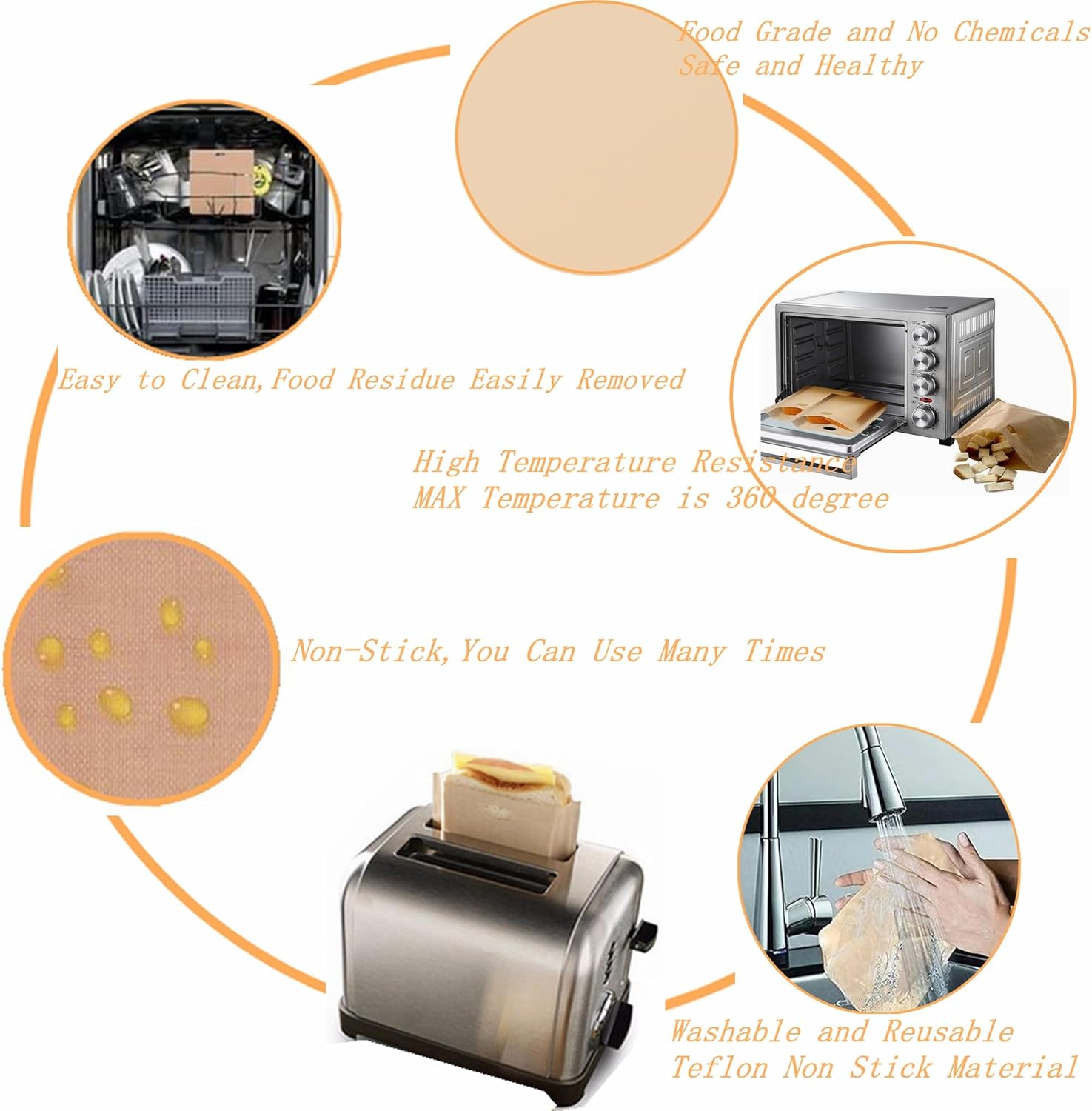 - REUSABLE TOASTER BAGS:Toast bags can be washed in warm soapy water or in the dishwasher,Each toaster bag can be used up to a 50 times