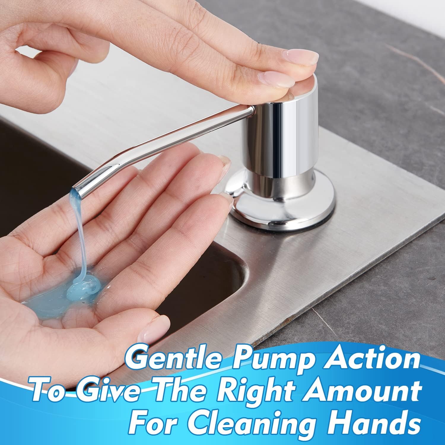 CREA Chrome Built-in Soap Dispenser for Kitchen Sink,Stainless Steel Kitchen Dish Soap Dispenser Pump,in Counter Soap Dispensers Under Sink Mouted Set 39" Tube 17oz Large Bottle