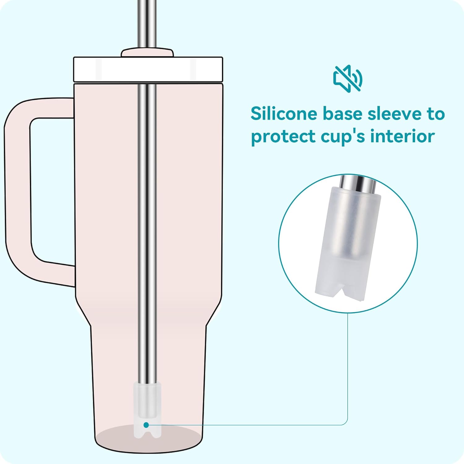 - SPECIAL DESIGNED BOTTOM TUBE - To prevent the stainless steel straw from rubbing against the bottom of the insulated cup and causing noise, we designed a separate silicone base sleeve that protects your cup's interior while reducing unwanted sounds