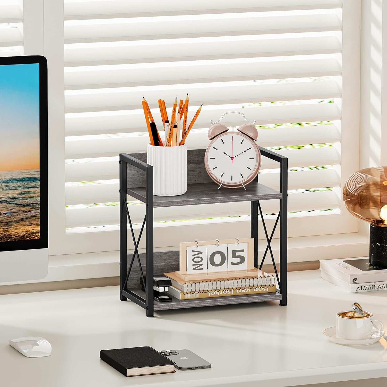 - 【Versatile Countertop Organizer】This grey countertop shelf is perfect for various settings including the kitchen, bathroom, office, pantry, cabinet, and is especially well-suited as a coffee bar organizer.