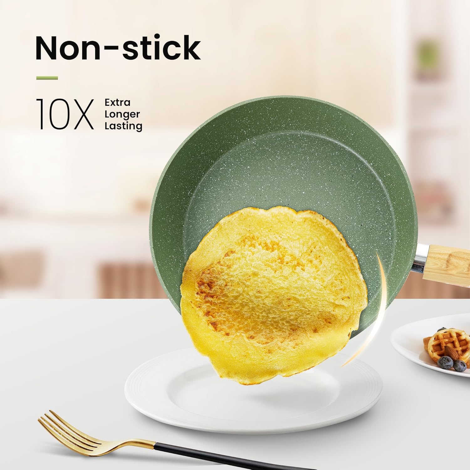 - Pots and Pans Set Non Stock - When buying cookware, one of the important things is nonstick capabilities. The graniteware coating do a good job in preventing food from sticking. Also, you'll be able to cook healthier meals for your family since you won't have to use as much oil. You can safely cook tomato sauce in granite cookware cookware, the taste and smell of your food will not change even if you use acidic or strong-smelling ingredients