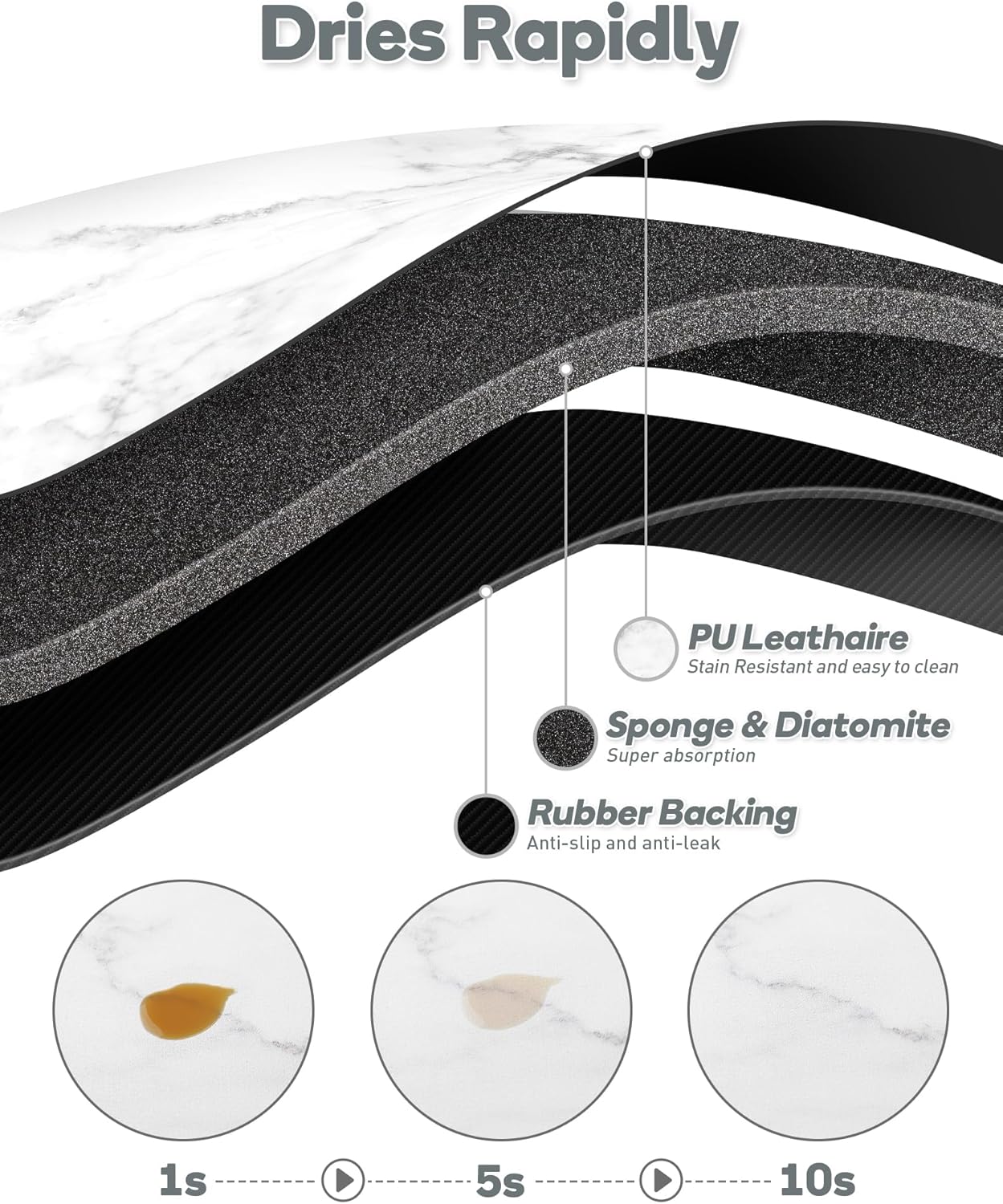 - Ultra-absorbent - Our dish drying mat is crafted from high-quality diatomite with sponge, offering exceptional absorbency to instantly soak up liquids without leaving any trace. It's not only a fantastic addition to your coffee bar for managing coffee splashes and spills but also a practical dish-drying mat for efficiently draining excess water beneath a dish rack.