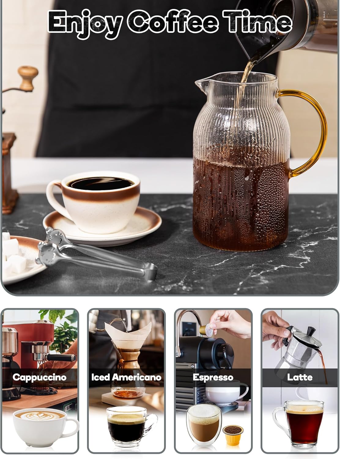 - Noise-dampening & Heat-resistant - Our coffee bar mat is 1/6" thick, which can effectively cushion coffee machine noise and reduce clinking sounds as cups touch the tabletop, ensuring you a tranquil and pleasant coffee experience. Additionally, it provides ample protection for your countertop, effectively shielding it from the heat of boiling water.