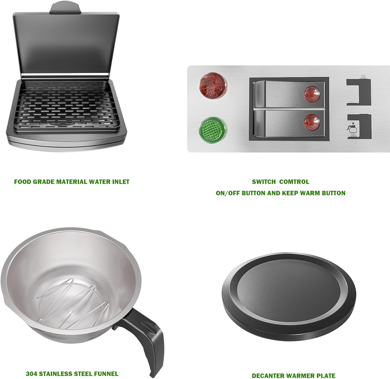 - Waring Panels: The warming plate keeps the coffee at an perfect temperature. Each panel has a separate button. Two warming panels keep your drip coffee machine working all the time and the coffee from getting cold. By pressing the keep warm button, you'll always have fresh and warm coffee again and refill another cup