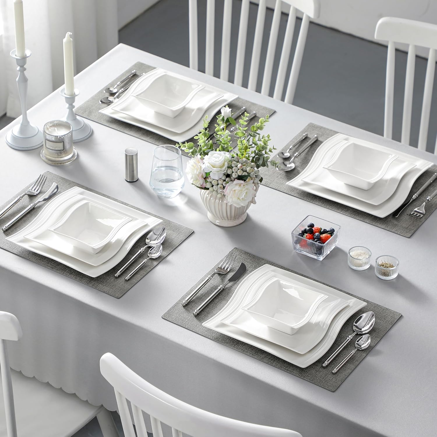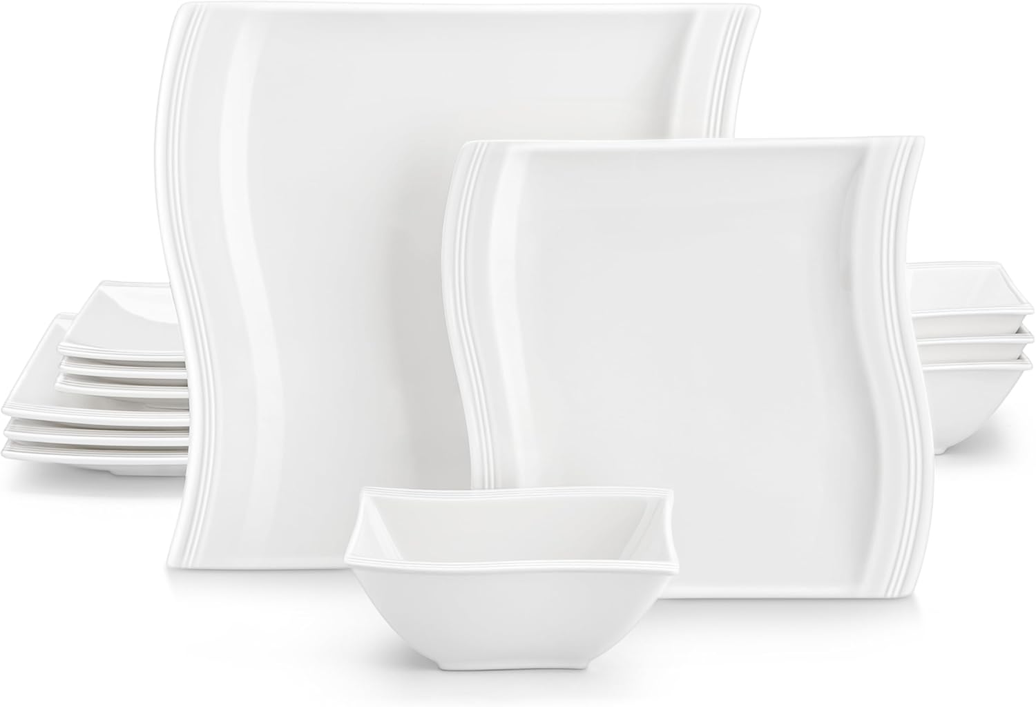 - Modern Aesthetics & Classic Elegance - Inspired by a fusion of modern style and natural elements - low-profile square and wavy-shaped design, MALACASA plates and bowls sets seamlessly transitions from casual to formal settings, adding sophistication to every meal.