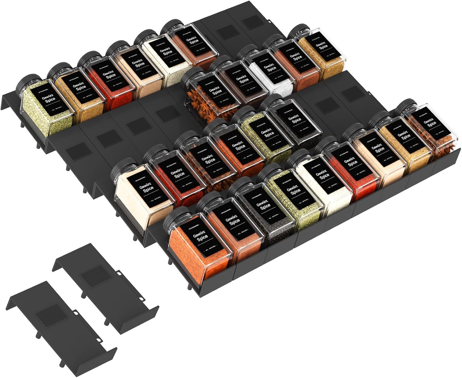 - Easy Assembly: No Tools Required! Our drawer spice rack is easy to install and use. Simply place the inserts in your drawer and adjust it to the desired size. Keep your countertop neat and tidy.