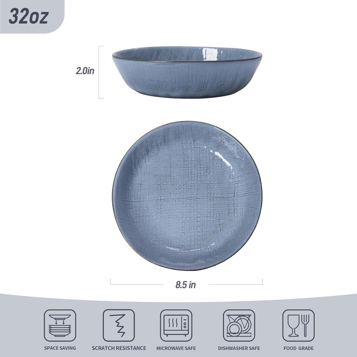 famiware Moonlight 8.5 Inch Pasta Bowls Set of 4, 32oz Serving Bowls for Kitchen, Soup Bowl with Linen Finish, Large Stoneware Bowls for Festivals, Housewarming, Dinnerware, Blue