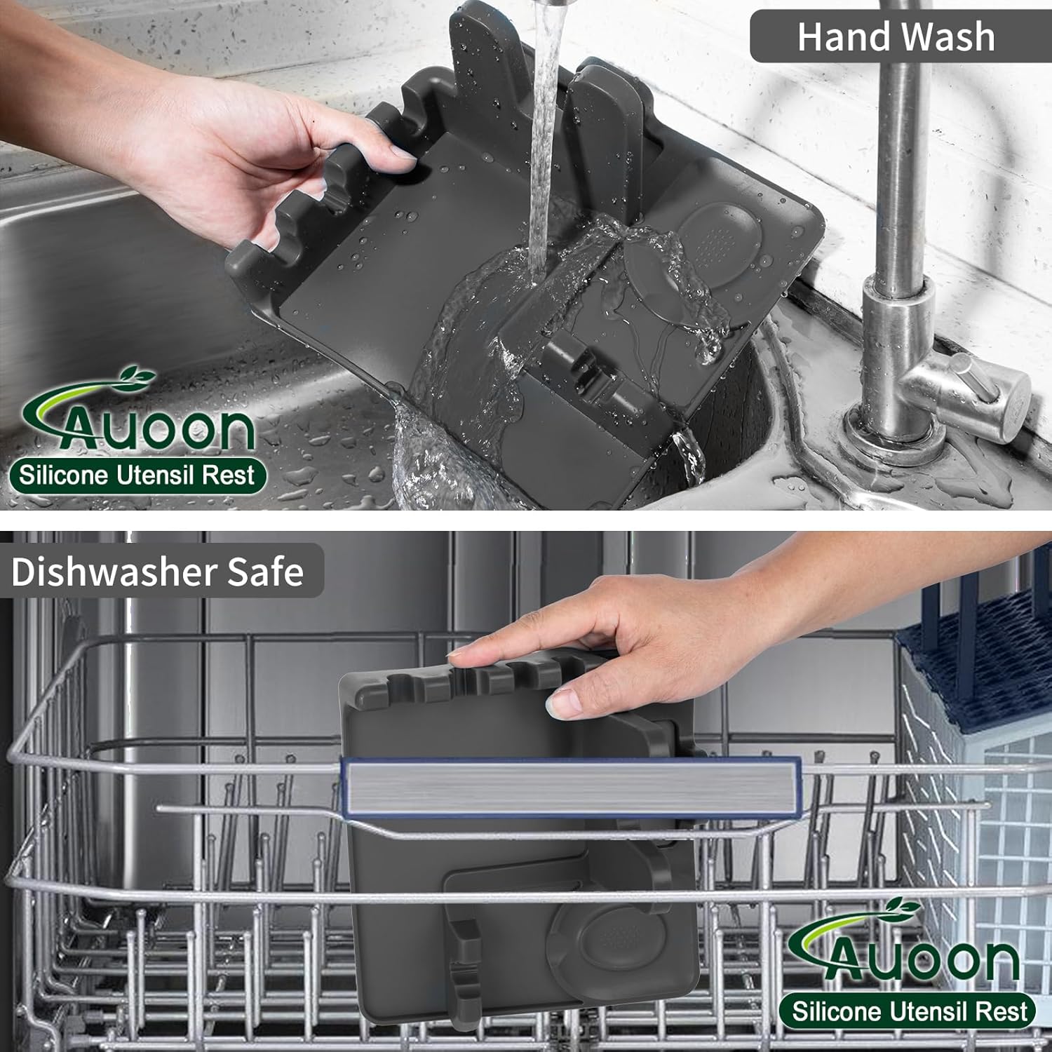 - 【Keep Your Countertop Clean】AUOON spoon and lid rest is a must-have for a tidy kitchen. It neatly holds your utensils and pot lid, preventing oil and water from splattering everywhere. Enjoy a clean and organized cooking space