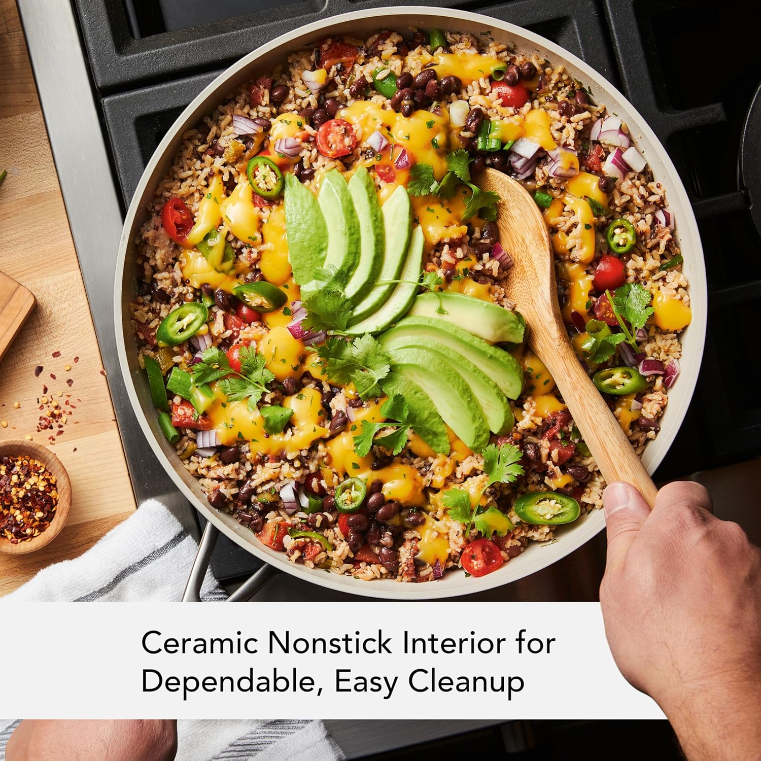 - EASY-CLEAN CERAMIC: High performance ceramic nonstick is made without PFAS, BPA, Lead, or Cadmium* for safe, consistent food release and fast, easy cleanup (*Manufacturing process does not involve adding to the product any of these substances which may otherwise be present in the environment)