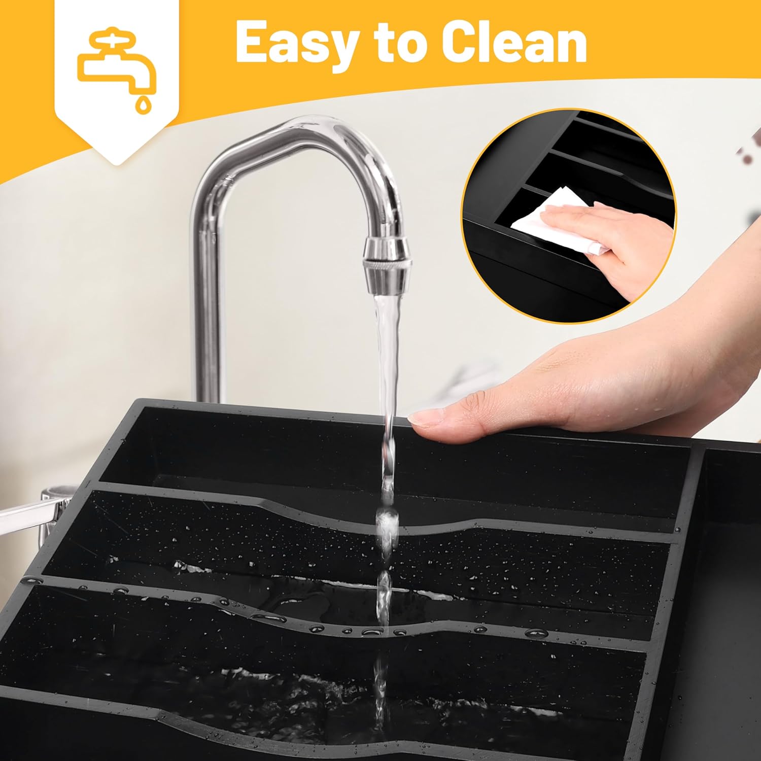 - ✅【Multifunctional Design For Your Needs】Our multi-purpose cutlery organizer is not only suitable for storing silverware, but also with large capacity & deep grooved edges, the storage tray can also be used to organize your office, bathroom sink drawer, dresser, & craft corner, being perfect to sort pencils, pens, grooming supplies, makeup brushes and lipsticks, or art supplies like paintbrushes and charcoal.