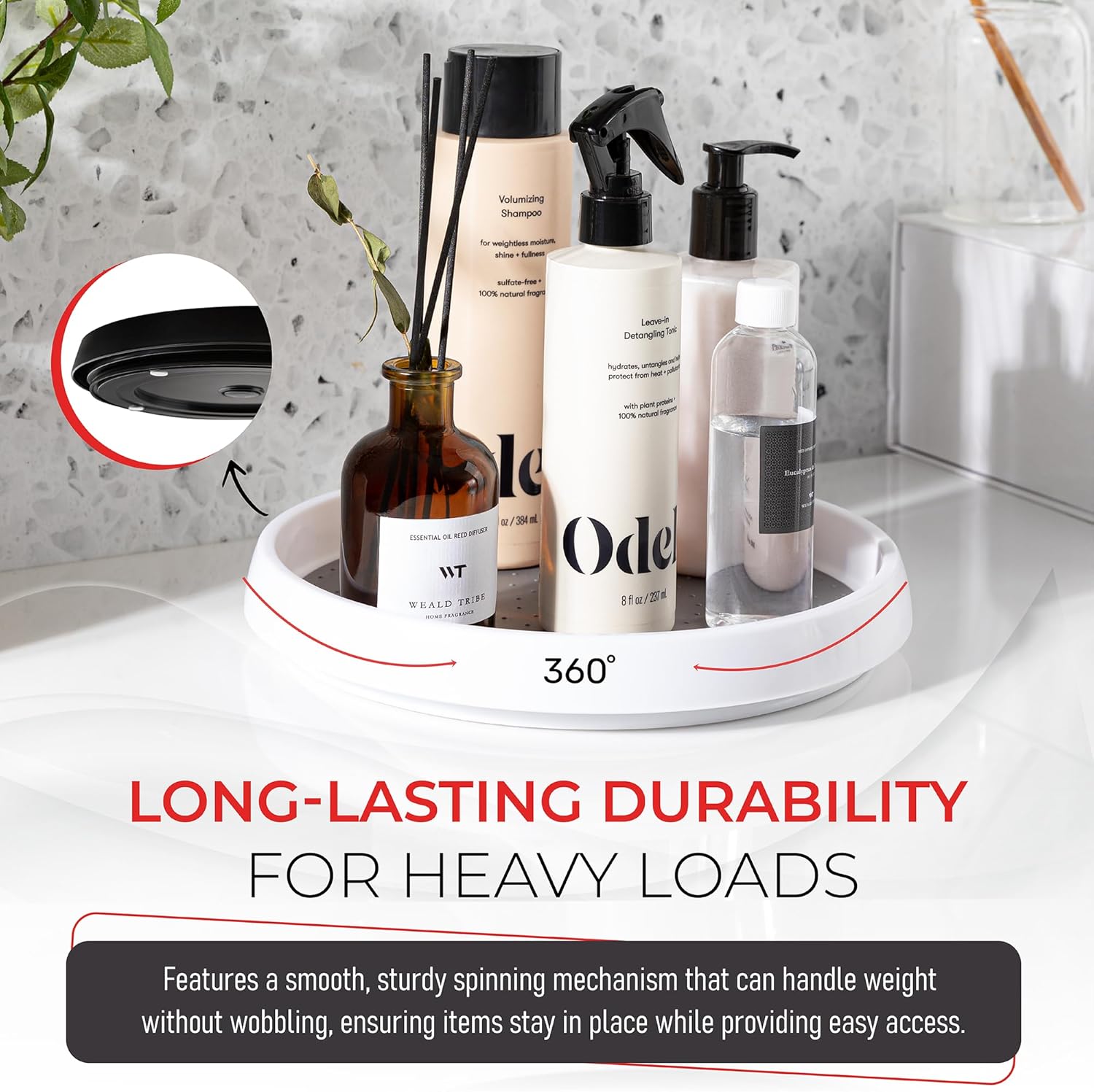 - SMOOTH ROTATION: Features a smooth, sturdy spinning mechanism that can handle weight without wobbling, ensuring items stay in place while providing easy access